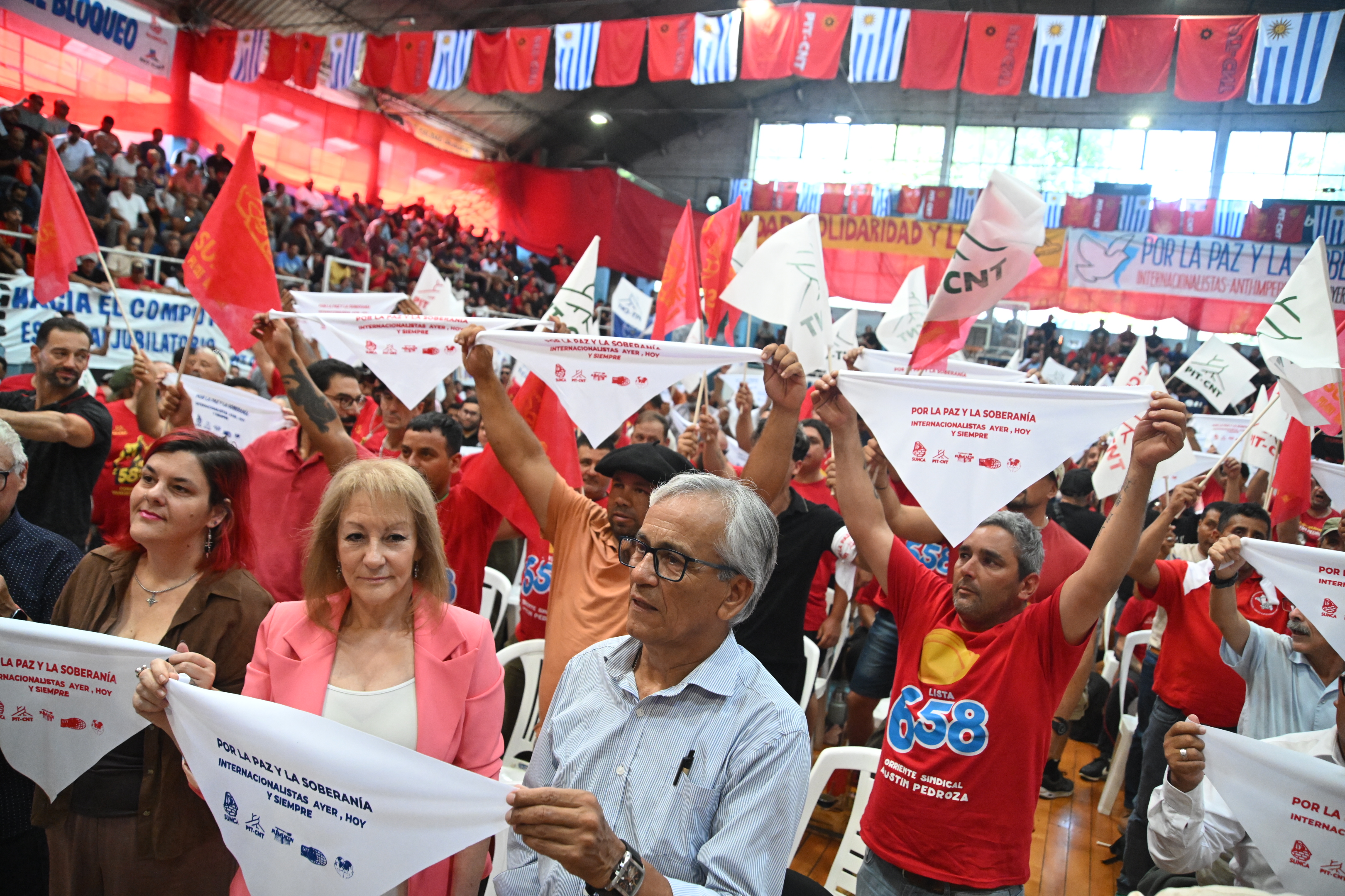 Carolina Spilman (PIT-CNT), Carolina Cosse y Juan Castillo en el XIX Congreso del Sunca, en el Club Cordón.