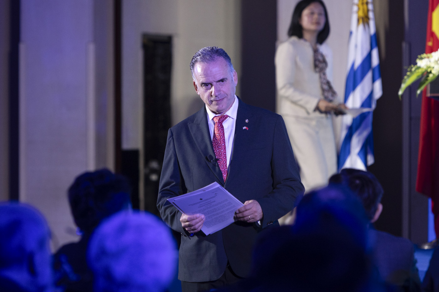 El presidente Yamandú Orsi luego de hablar ante empresarios chinos, el 6 de febrero.