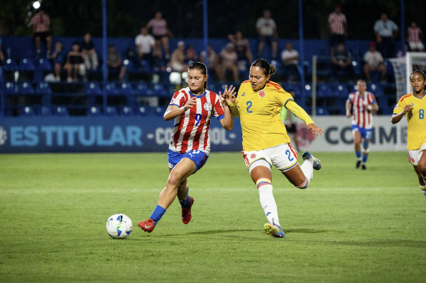 Las selecciones de Paraguay y Colombia, el 12 de febrero, en el estadio Luis Alfonso Giagni de Villa Elisa, en Paraguay.