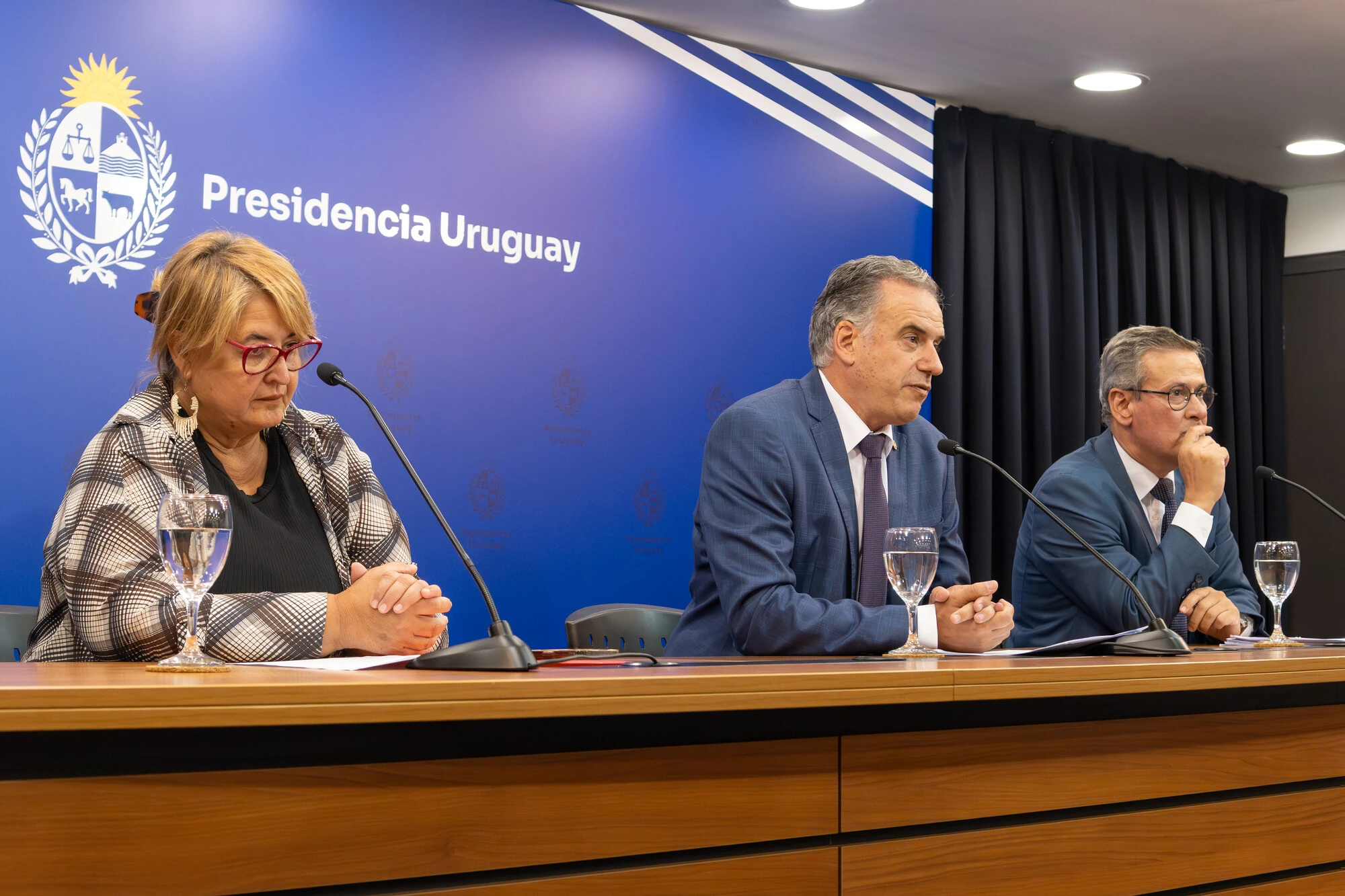 Sandra Lazo, Yamandú Orsi y Jorge Diaz en conferencia de prensa en Presidencia