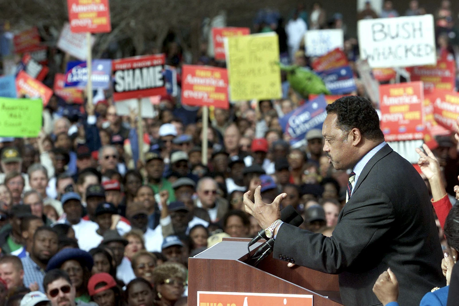 Jesse Jackson durante un discurso en Tallahassee, Estados Unidos (archivo, 2000).