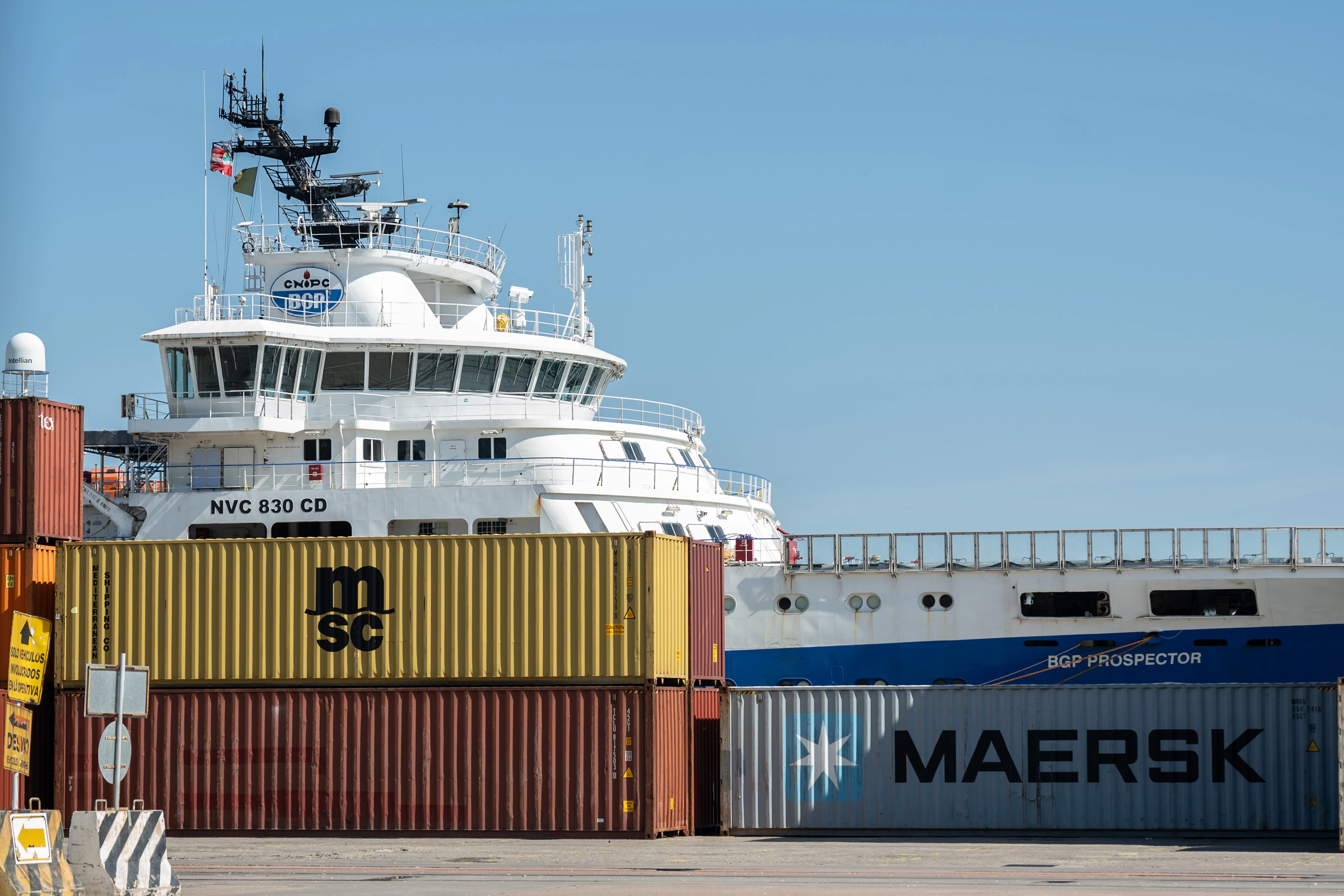 El buque de prospección sísmica BGP Prospector, el 2 de febrero, en el puerto de Montevideo.