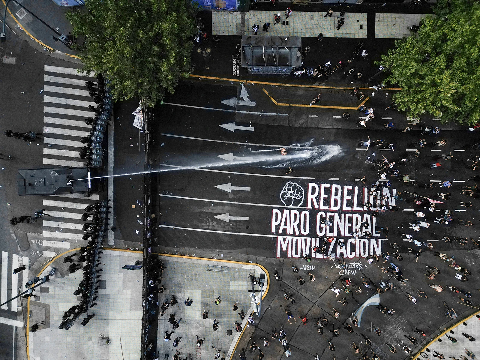 Policía y manifestantes frente al edificio del Congreso, el 19 de febrero, en Buenos Aires.