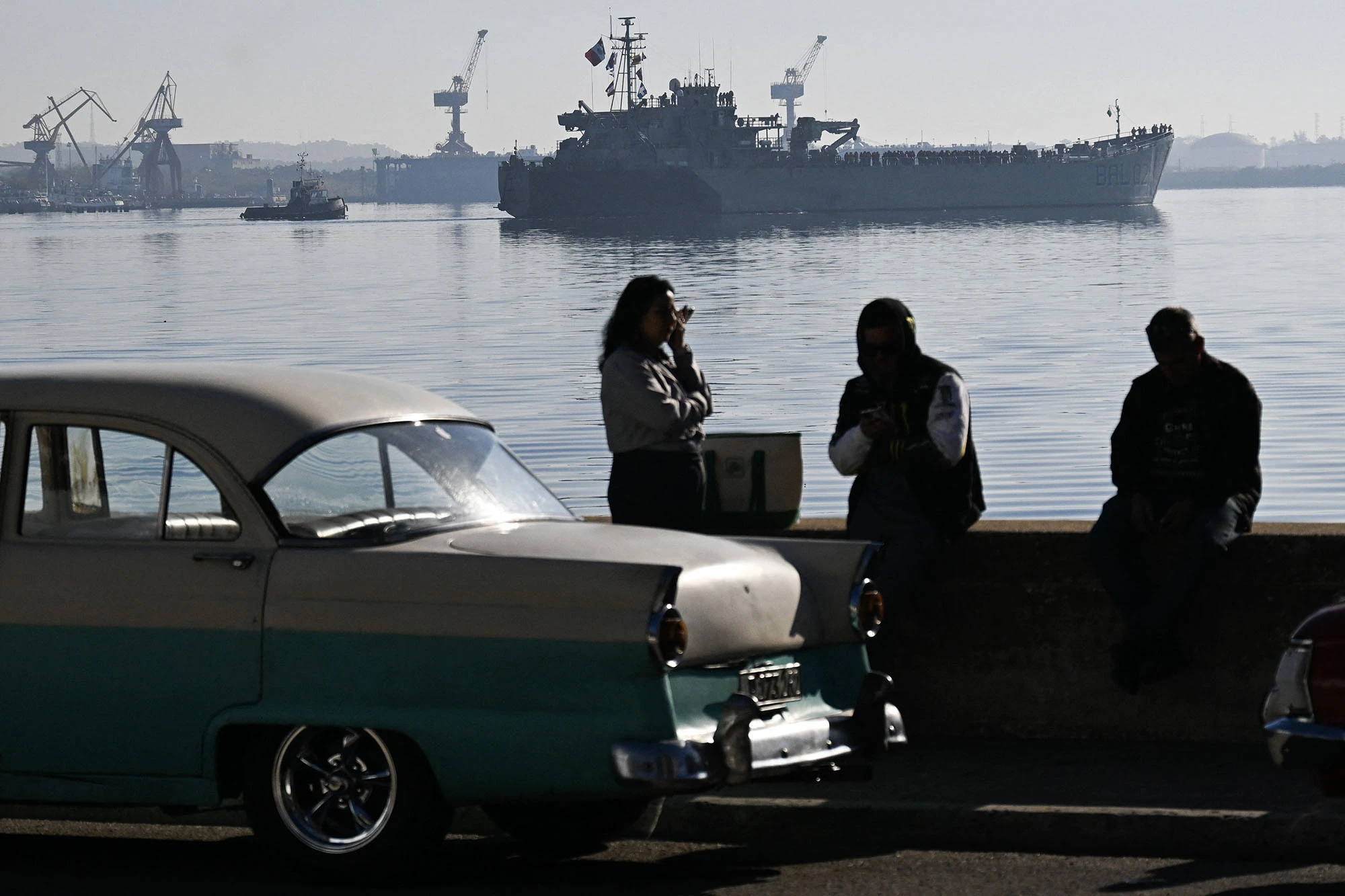 El buque Isla Holbox de la Armada de México llega a la bahía de La Habana con ayuda humanitaria.