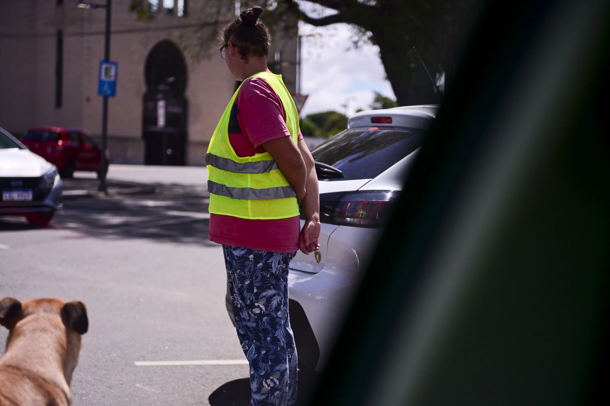 Cuidacoches en Colonia del Sacramento, el 25 de febrero.