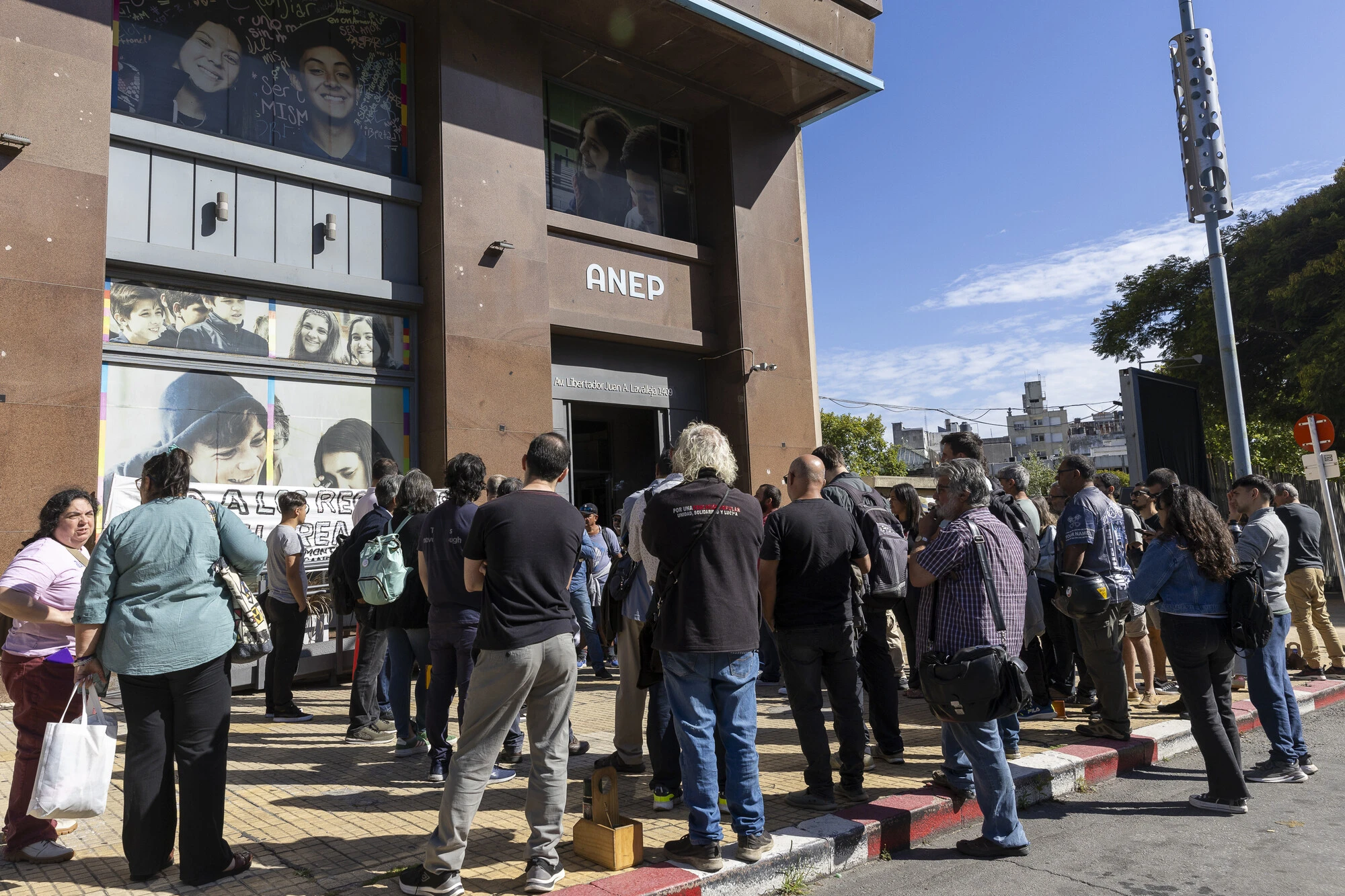 Manifestación de docentes de Tecnología de UTU previo a ocupar el Codicen de la ANEP.