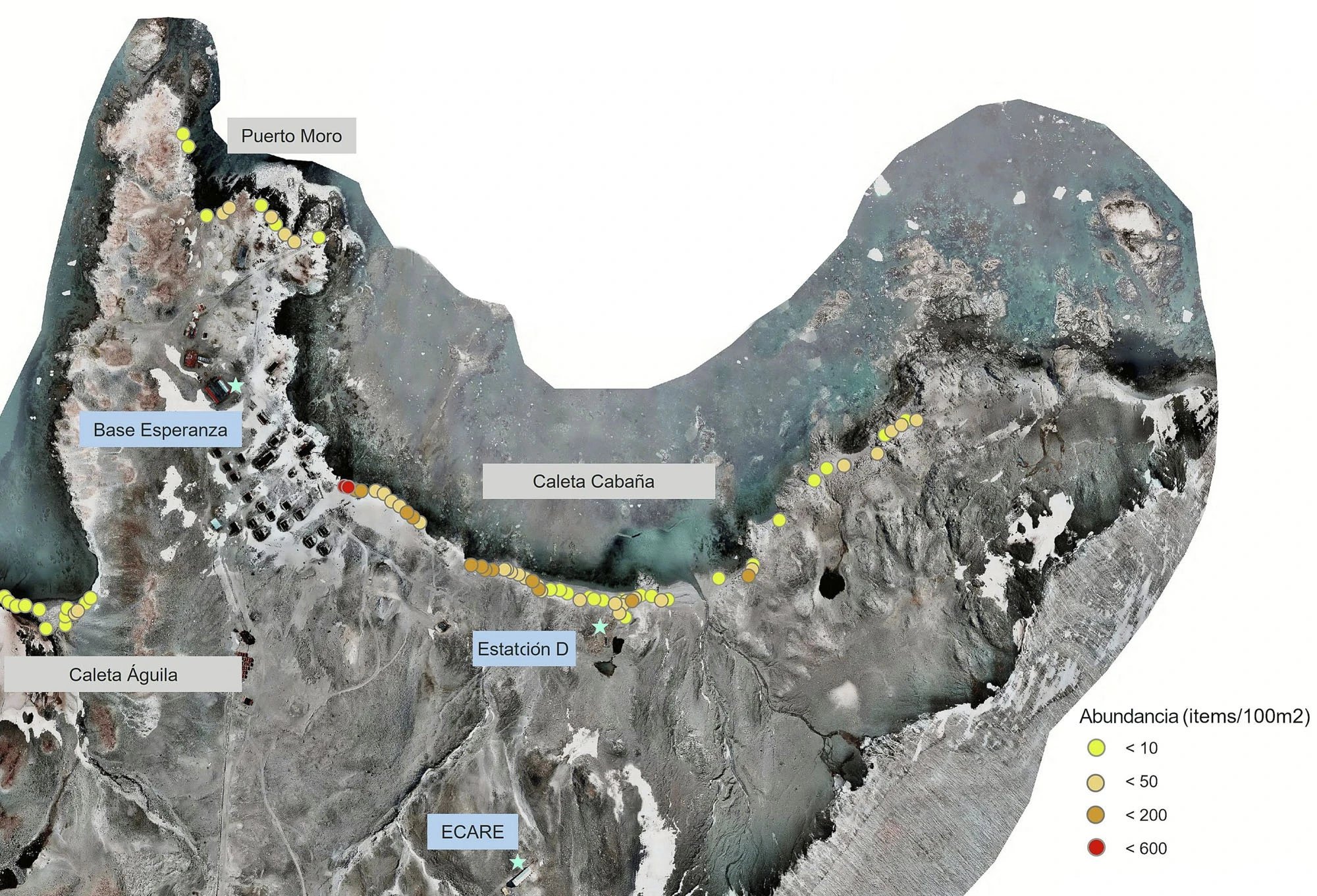 Plásticos encontrados en costa de Bahía Esperanza. En base a Juan Pablo Lozoya _et al._, 2026.