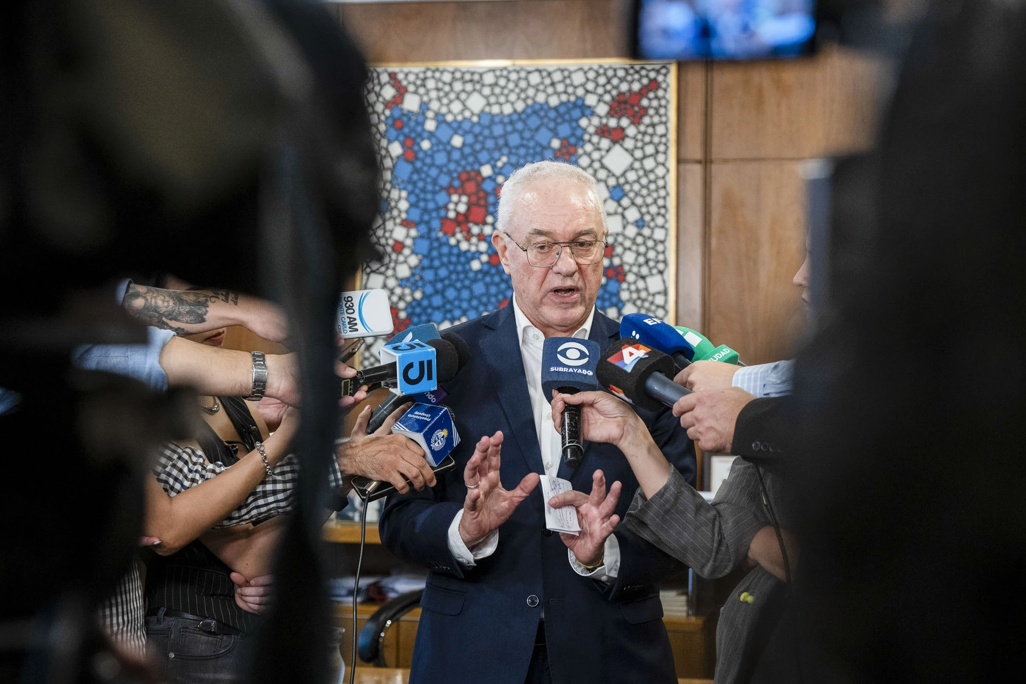 El ministro Mario Lubetkin, el 27 de febrero, en conferencia de prensa en el Ministerio de Relaciones Exteriores.