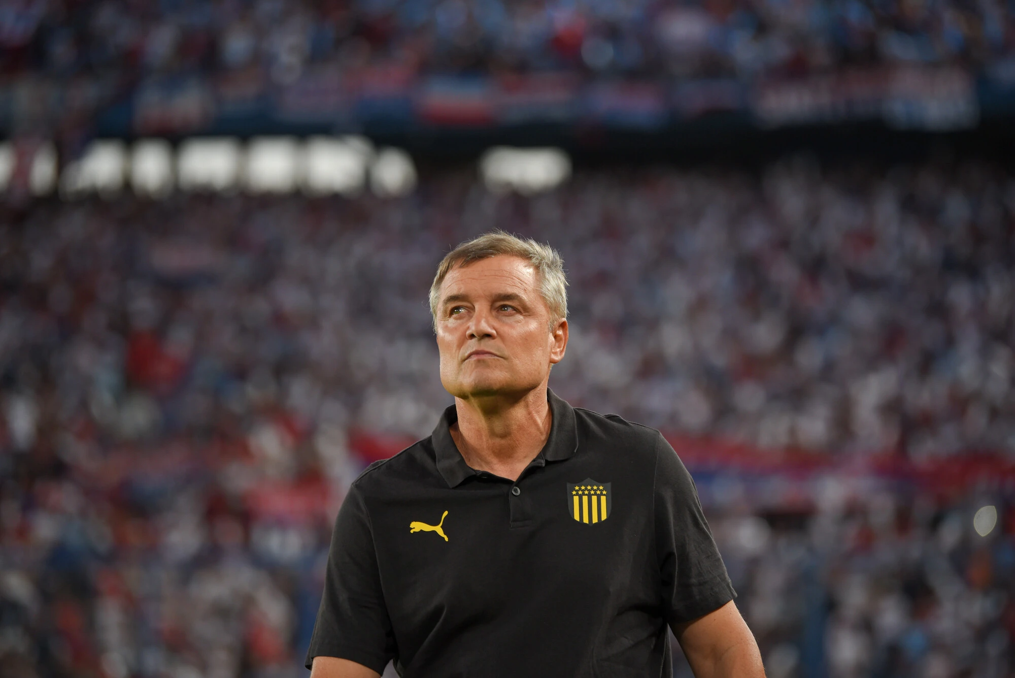 Diego Aguirre, director técnico de Peñarol, el 1° de marzo, en el Gran Parque Central.