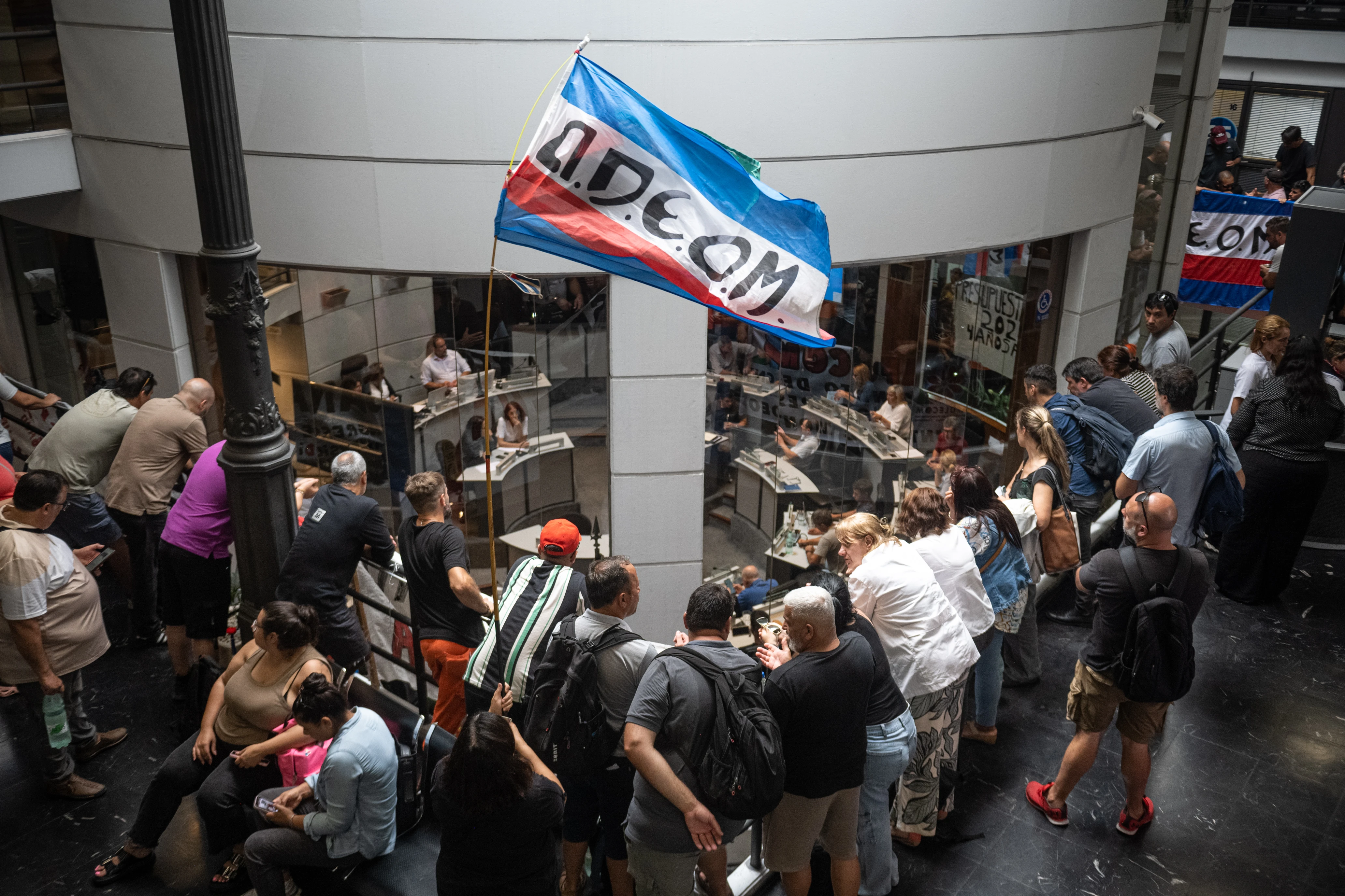 Movilización de Adeom, el 4 de marzo, en la Junta Departamental de Montevideo.