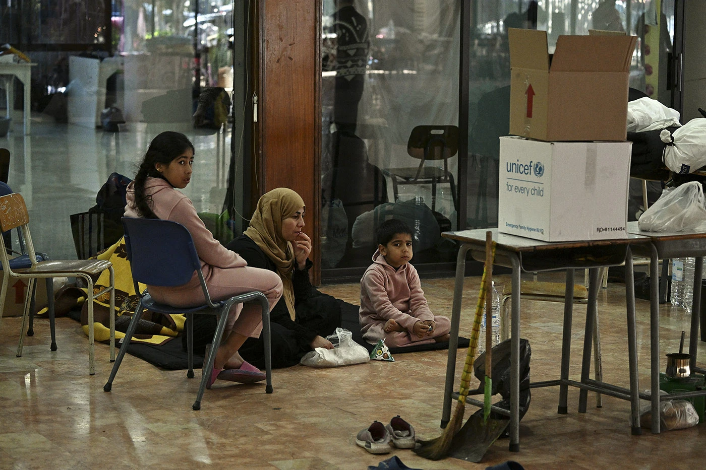 Escuela transformada en refugio para desplazados en la ciudad de Dekwaneh, al norte de Beirut, el 5 de marzo, tras bombardeos del ejército israelí.