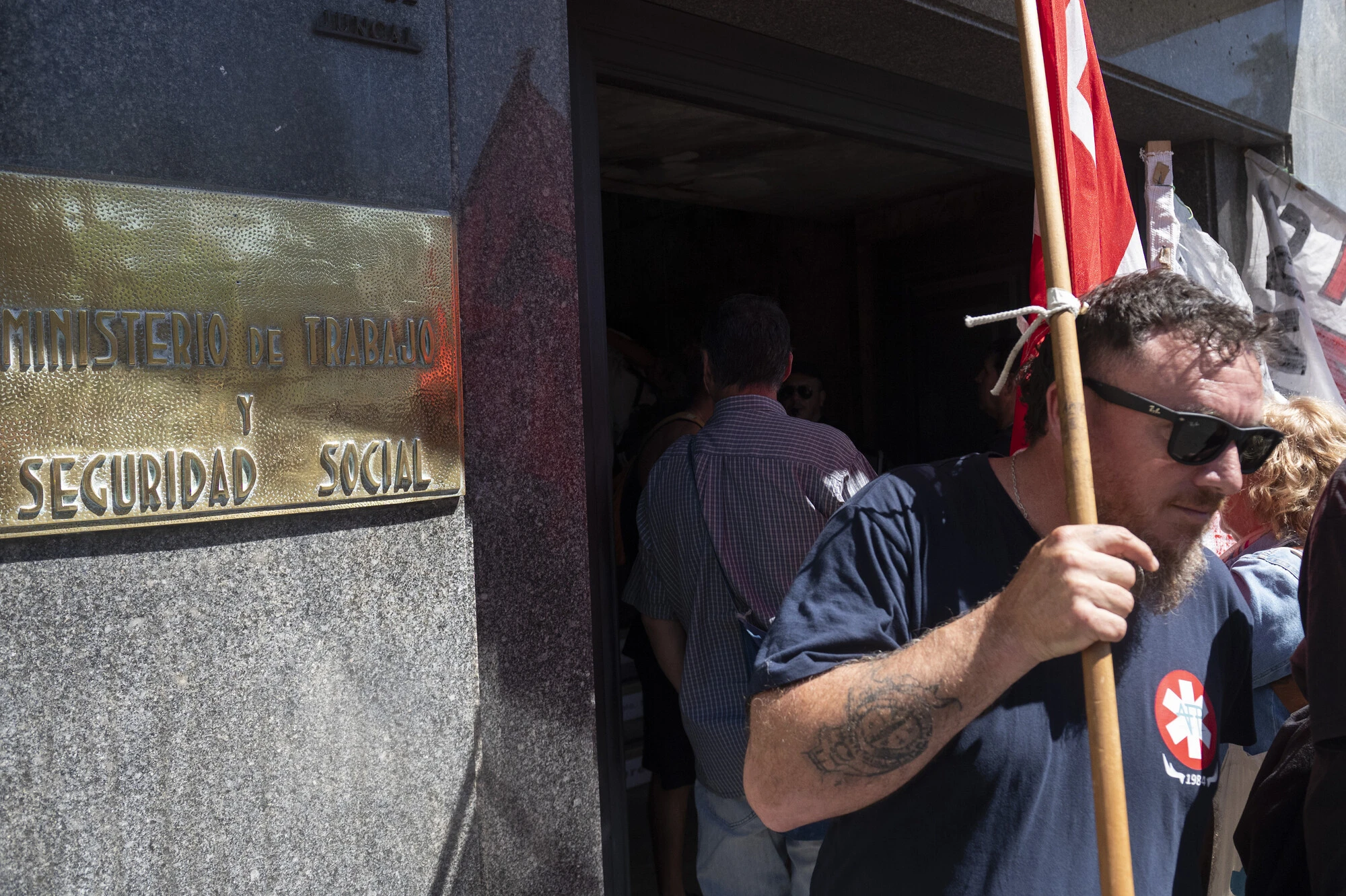 Trabajadores de UCM, el 9 de marzo, tras reunión en el Ministerio de Trabajo.