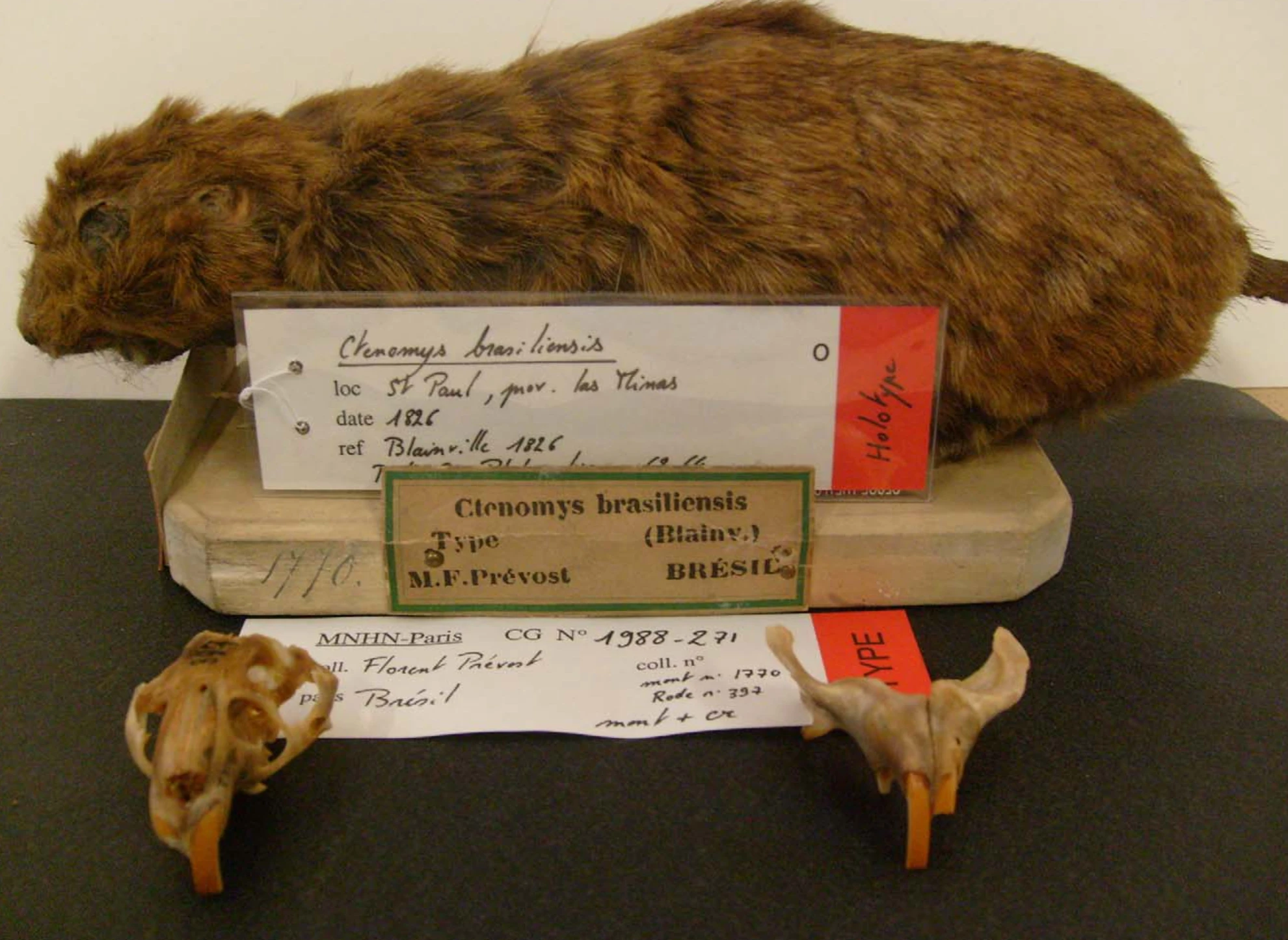 Holotipo de tucu tucu de Brasil en Museo de Historia Natural de París. Foto: Fernandes _et al_, 2012.