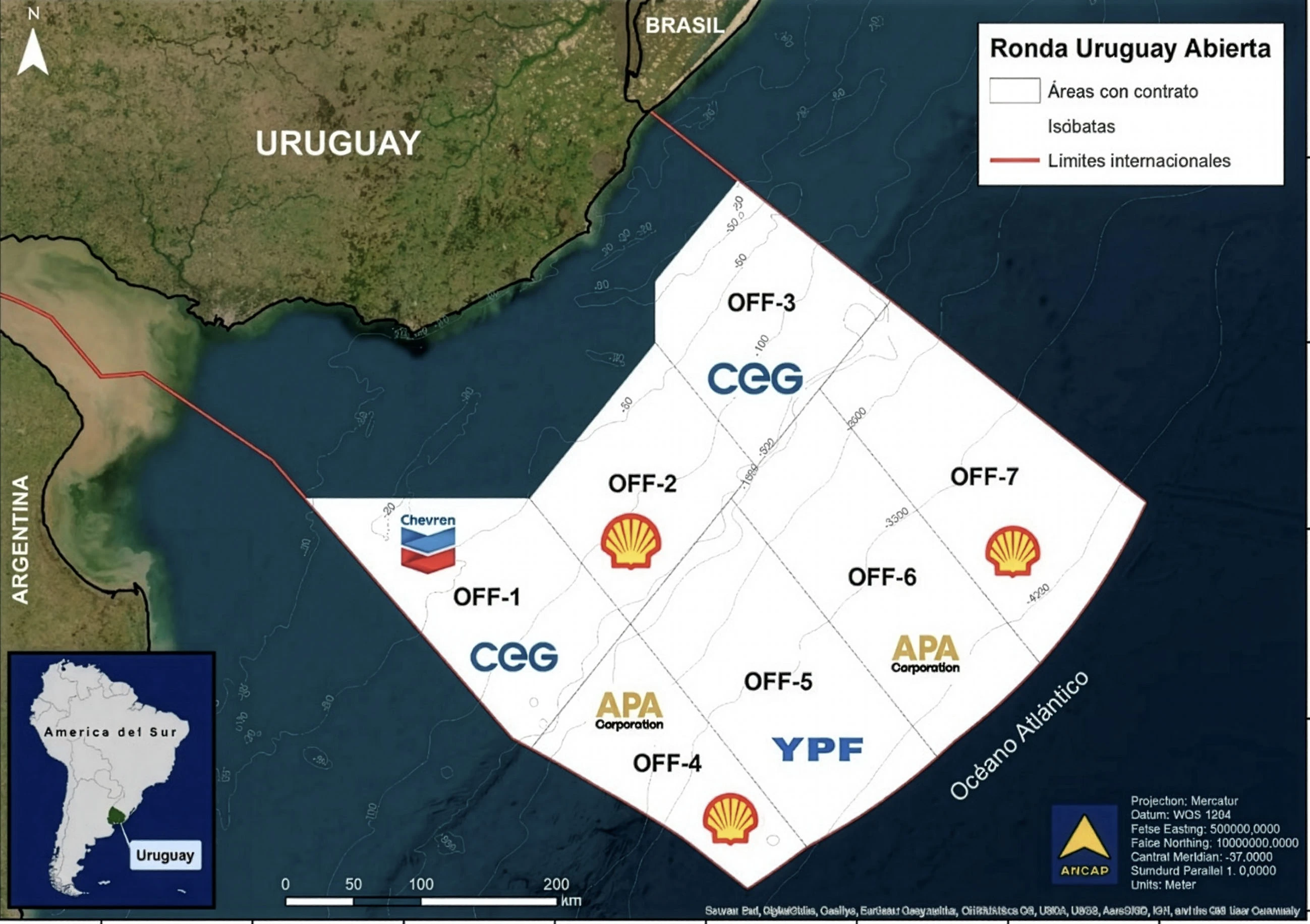 Mapa extraído de la página web de Ancap que tiene referenciado el bloque OFF-6, adjudicado a APA Corporation y donde está previsto llevar adelante el pozo exploratorio.