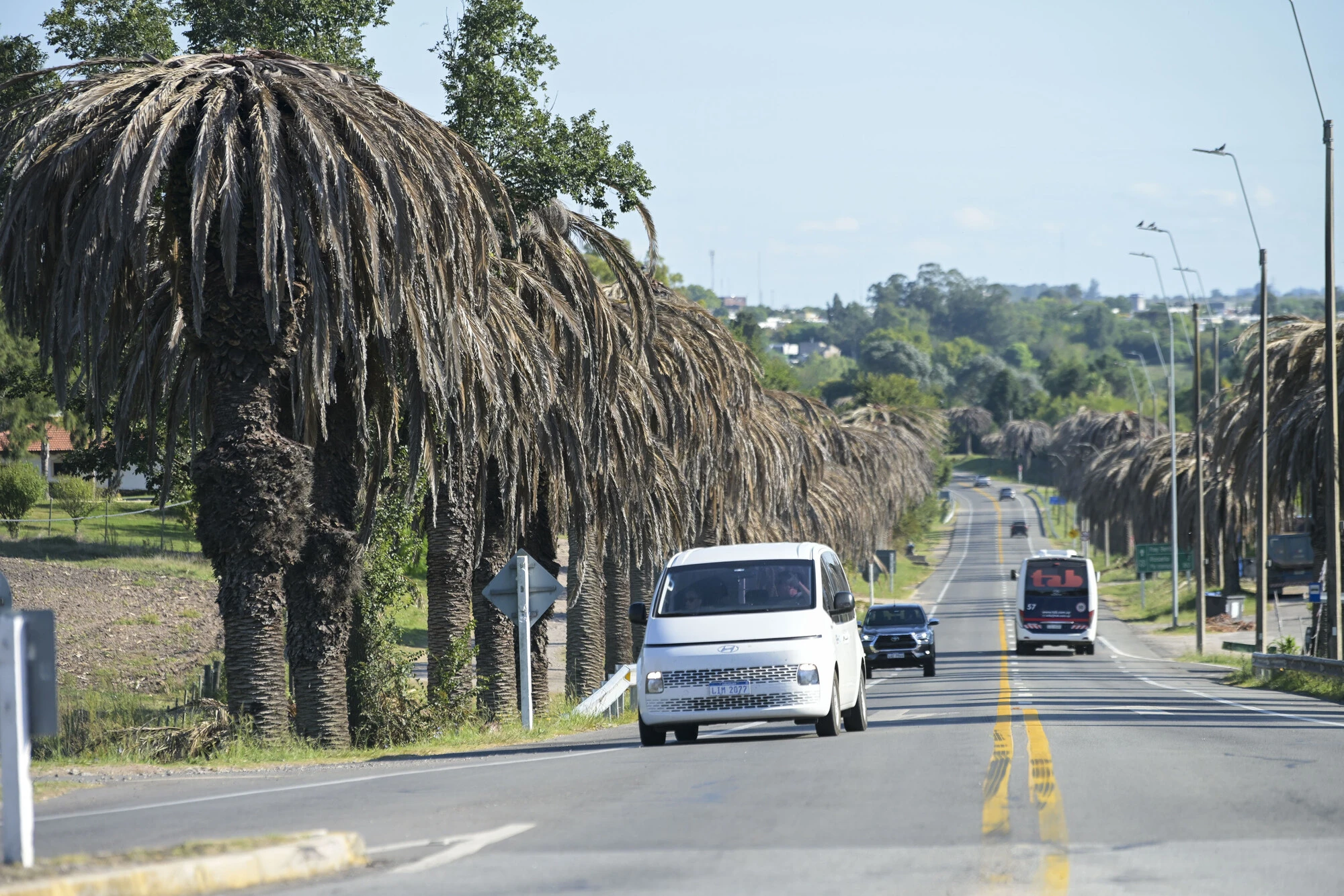 Palmeras atacadas y muertas por picudo rojo en el acceso a la ciudad de Rosario, por ruta 2, el 17 de marzo.