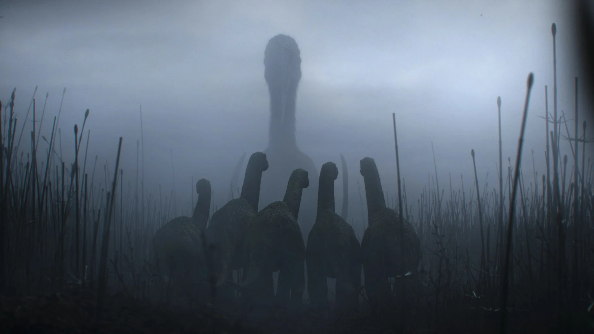 Surópodos pequeños _Magyarosaurus_ acechados por un pterosaurio.