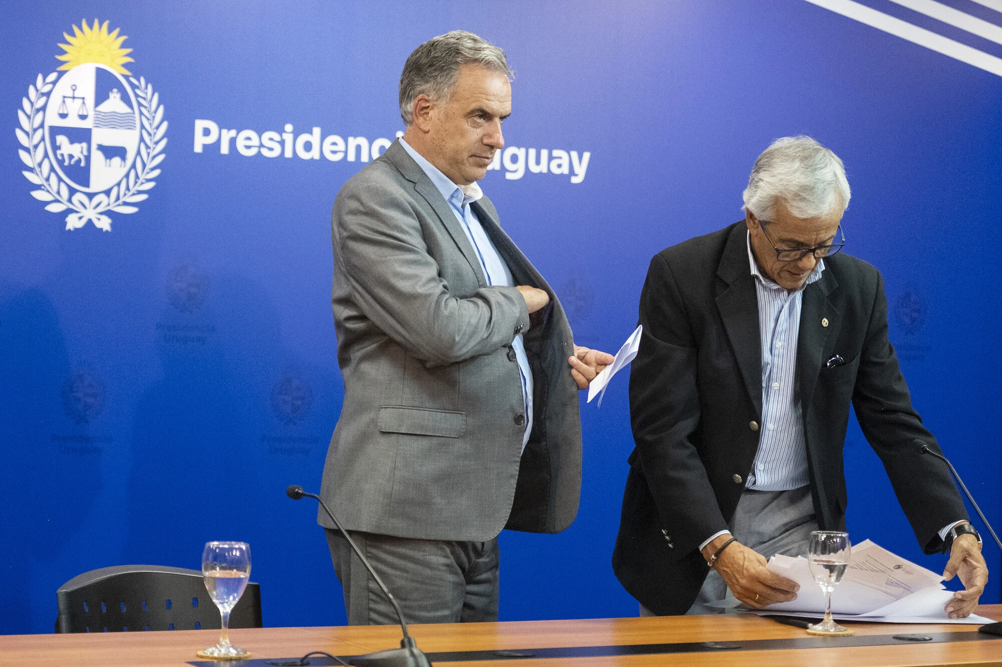 Yamandú Orsi y Juan Castillo, el 19 de marzo, previo a la conferencia de prensa en la Torre Ejecutiva.
