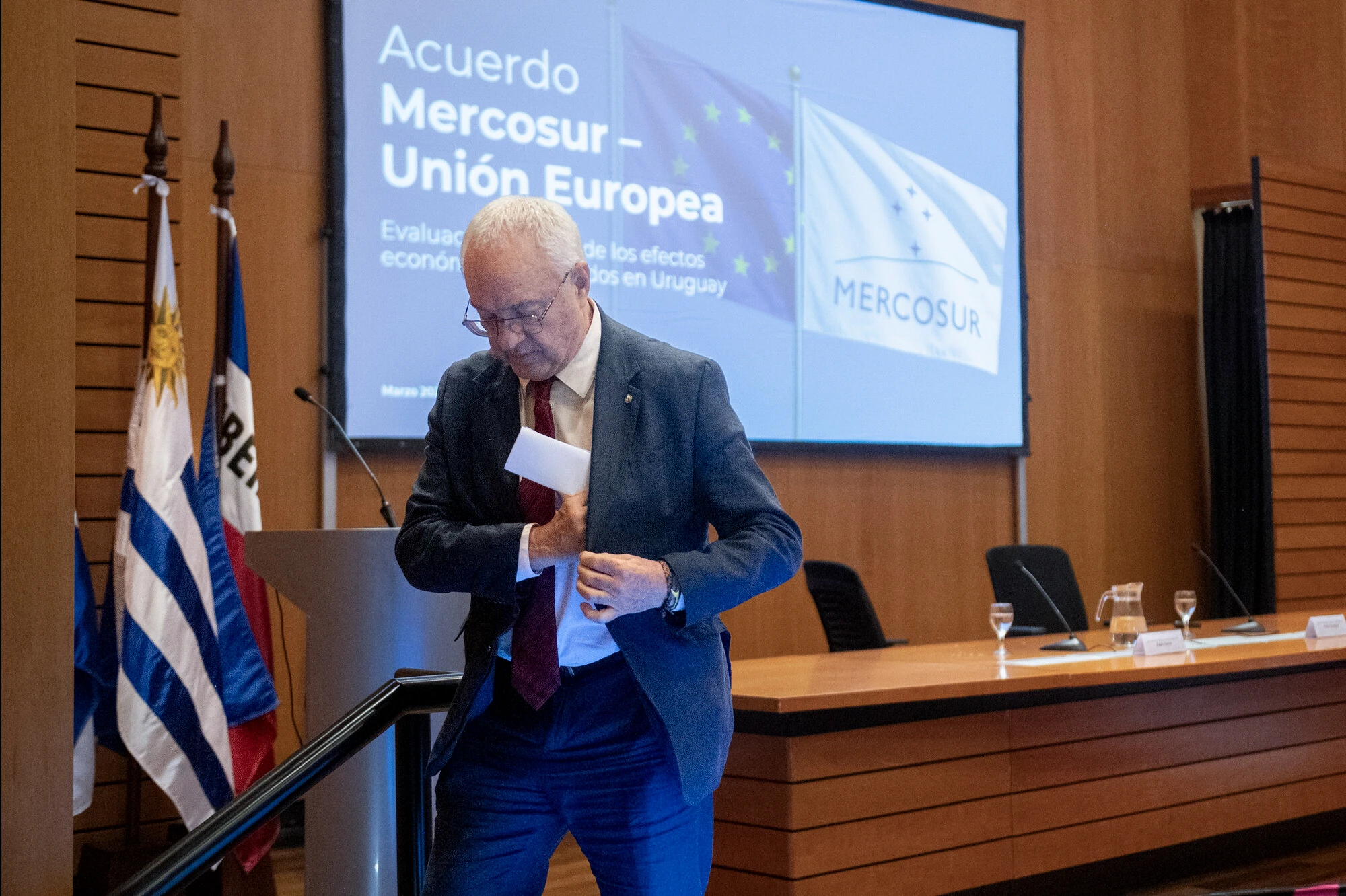Mario Lubetkin al finalizar la conferencia, el 19 de marzo, en el edificio anexo a la Torre Ejecutiva.