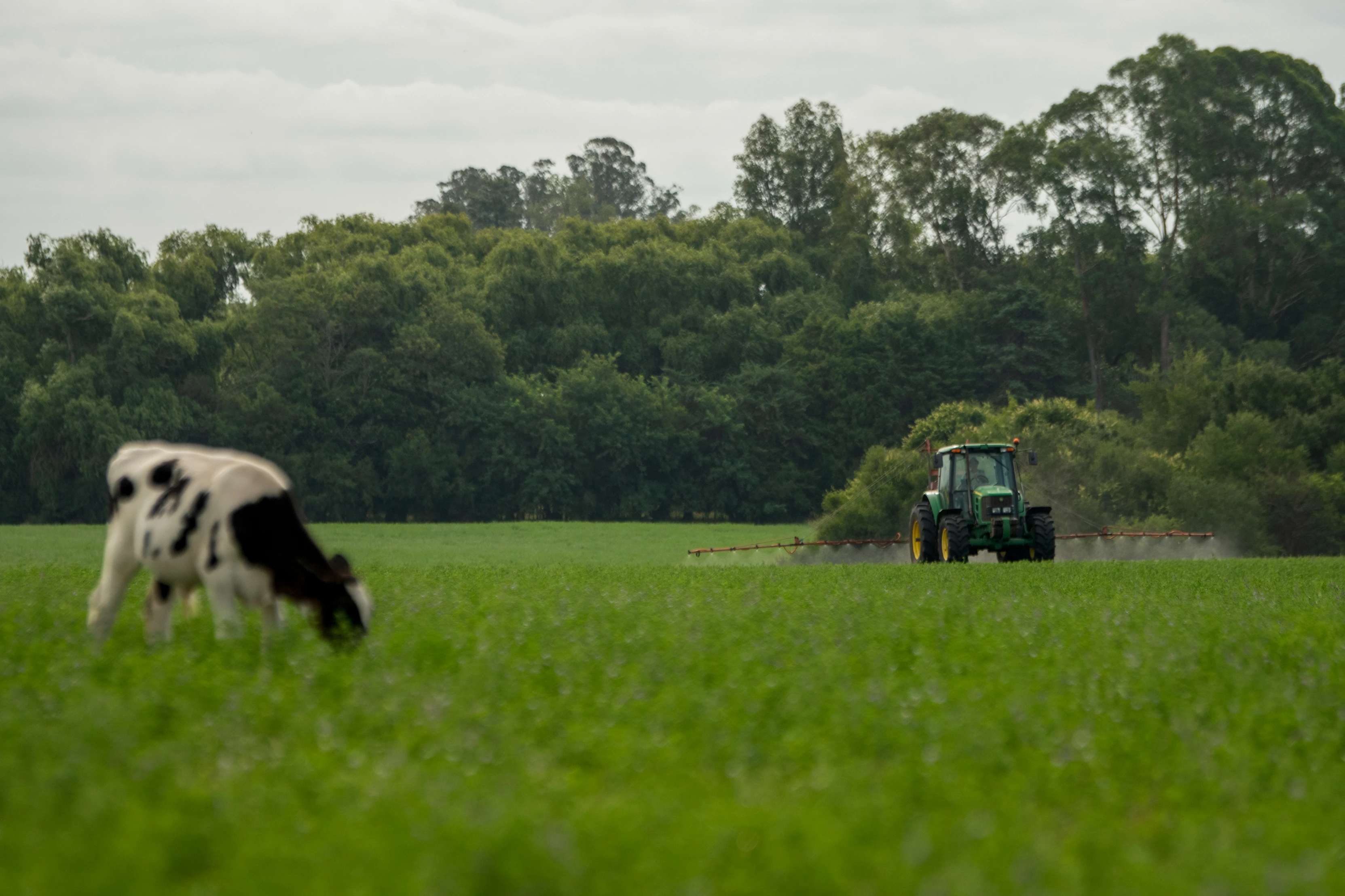 Aplicación de herbicidas en un campo de alfalfa en el departamento de Colonia. Foto: Ignacio Dotti (archivo, enero de 2025)