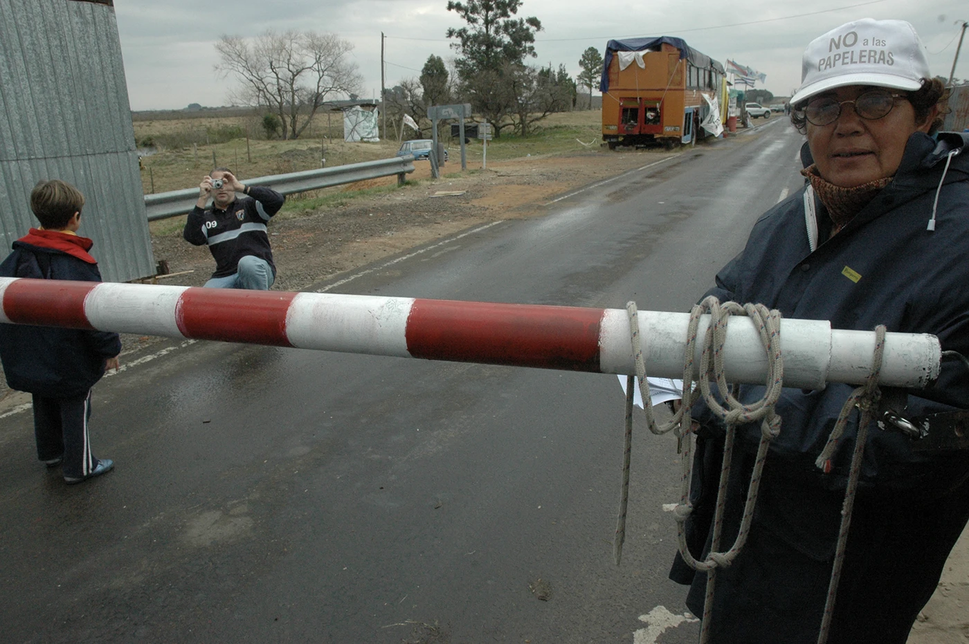 Corte de la ruta argentina 136 que une Gualeguaychú con el puente internacional Libertador General San Martín por parte de la Asamblea Ambiental de Gualeguaychú en protesta por la construcción de la fábrica de pasta de celulosa Botnia en Fray Bentos, el 24 de julio de 2007.