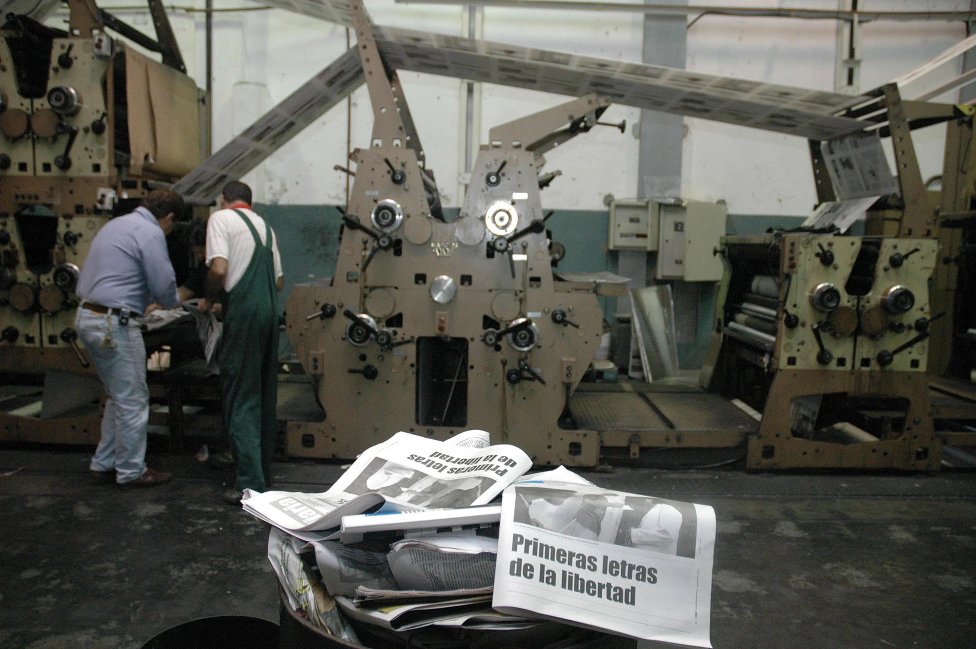 Impresión del primer número de _la diaria_, en la madrugada del 20 de marzo de 2006.