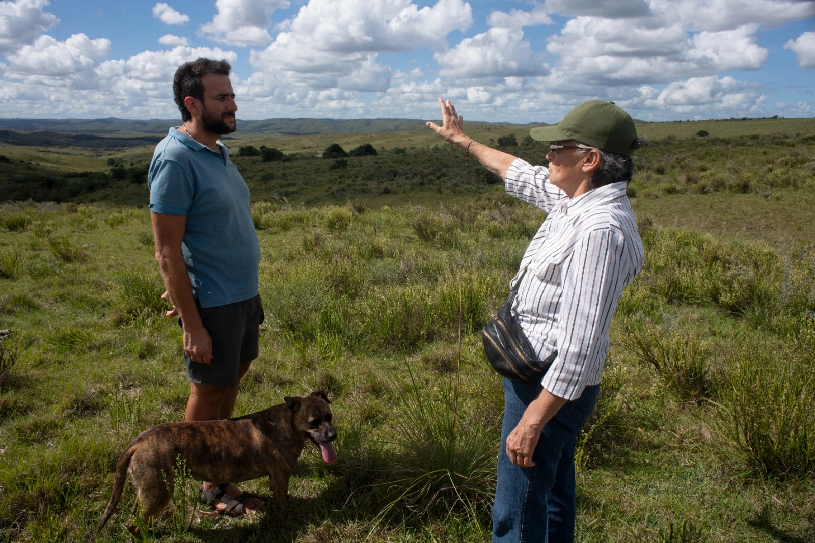 Bruno Coiro y Carmen Fleitas, durante una recorrida con vecinos en Isla Patrulla, el 13 de marzo.