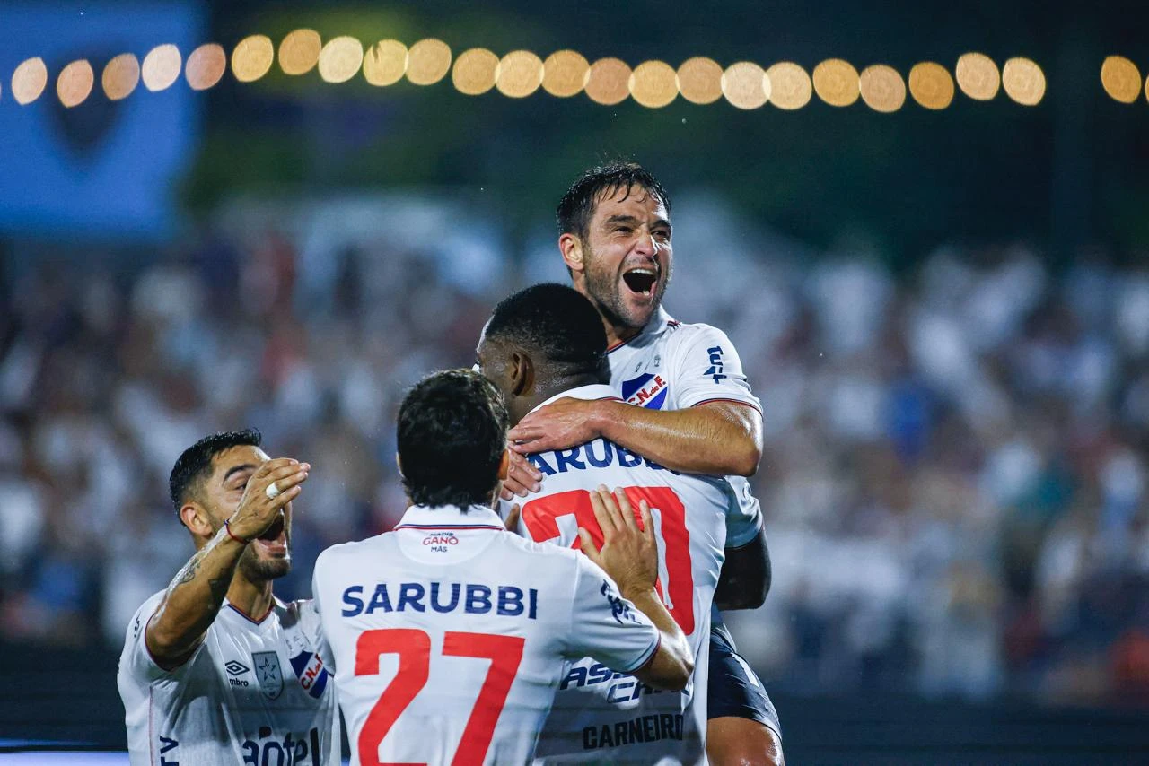 Jugadores del Nacional festejan el triunfo sobre M. C. Torque por la fecha 9 del Torneo Apertura del futbol uruguayo en el Estadio Charrúa.