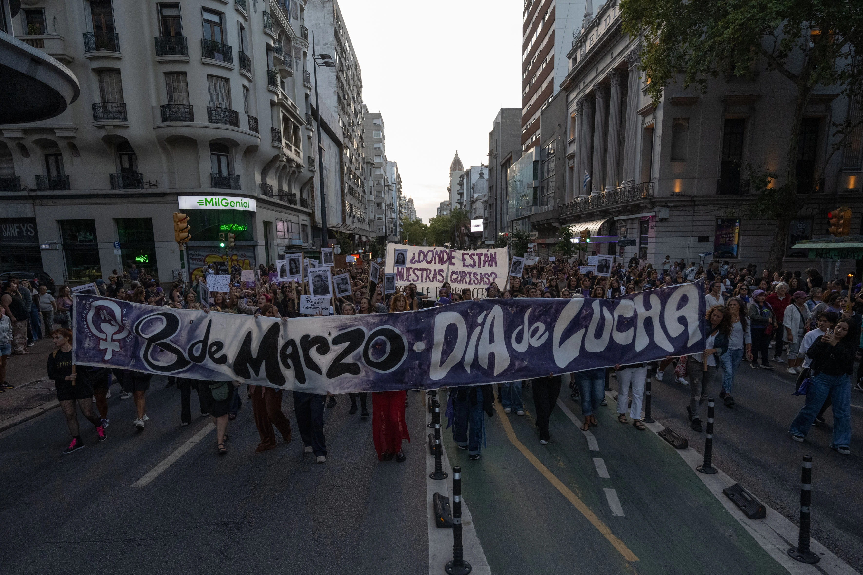 Movilización por el 8M, el 8 de marzo, en el Centro de Montevideo.