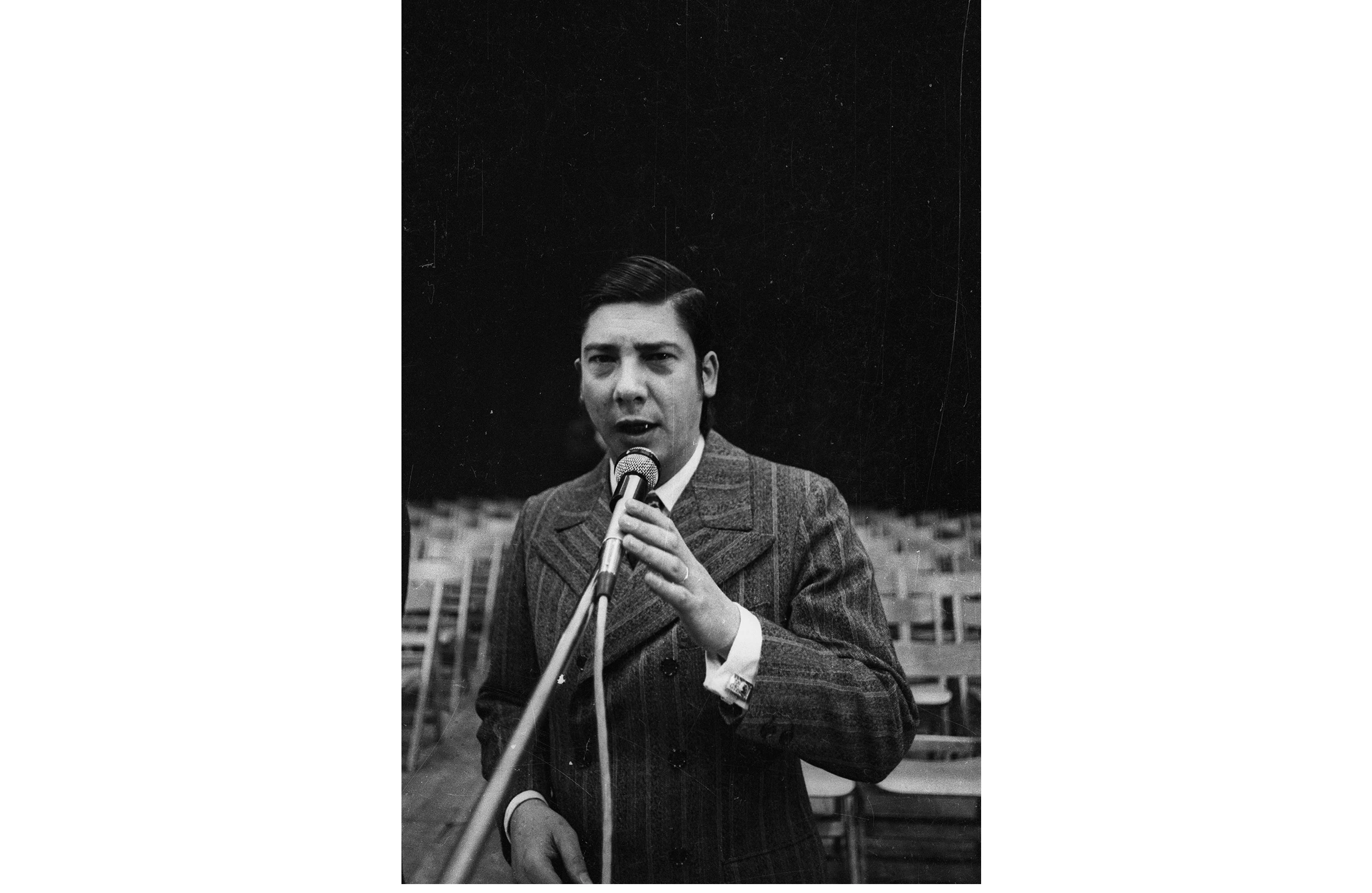 Alfredo Zitarrosa durante el acto por el 52º aniversario del Partido Comunista del Uruguay, en el Palacio Peñarol, el 29 de setiembre de 1972.