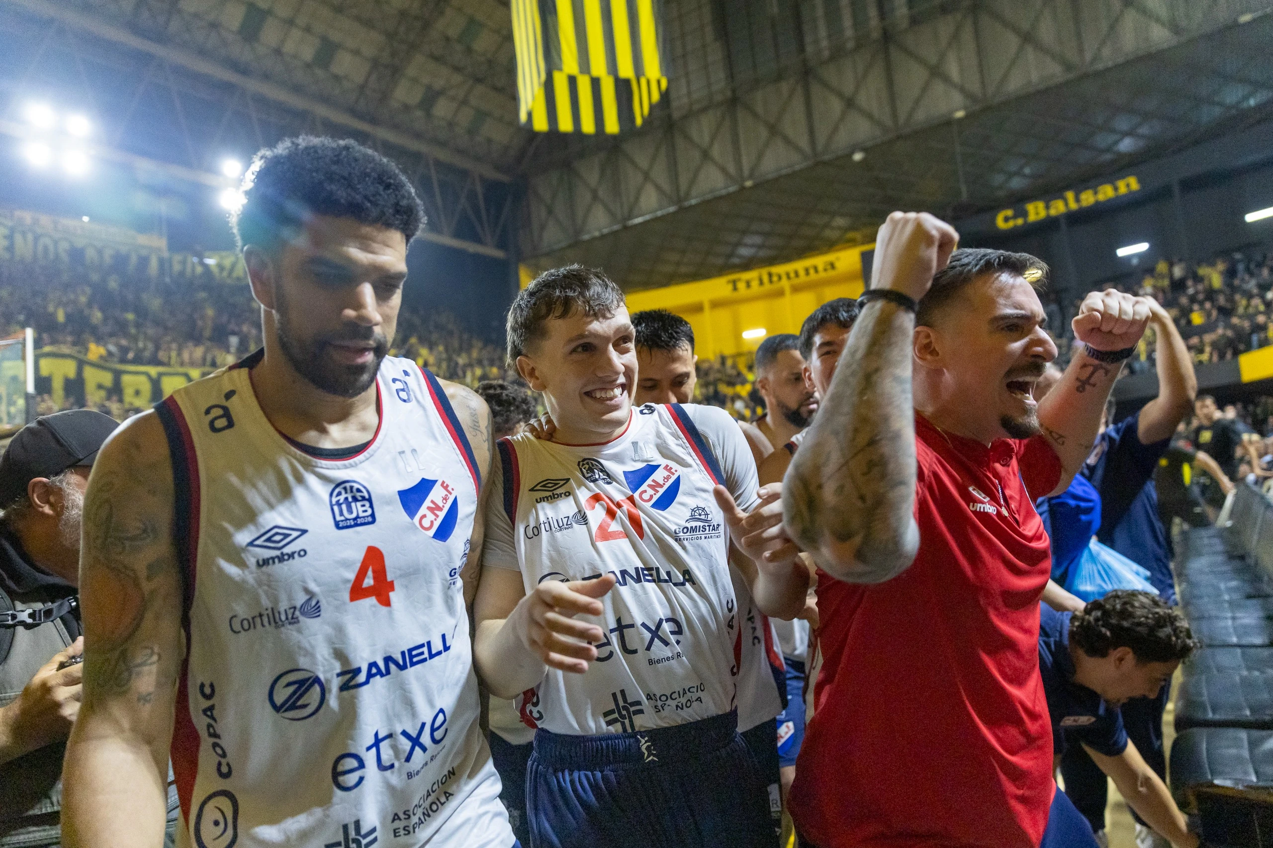Jugadores de Nacional, el 9 de abril, en el Palacio Peñarol.