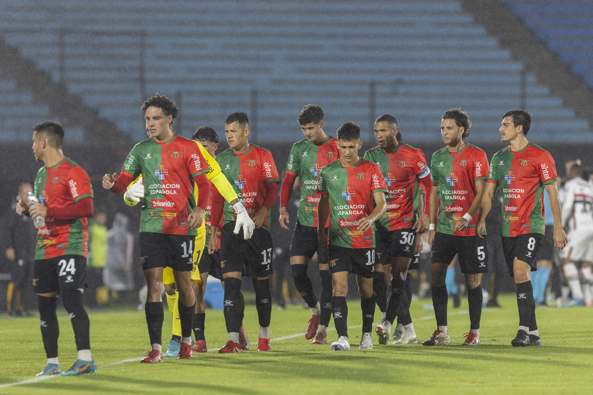 Jugadores de Boston River, el 7 de abril, en el estadio Centenario.