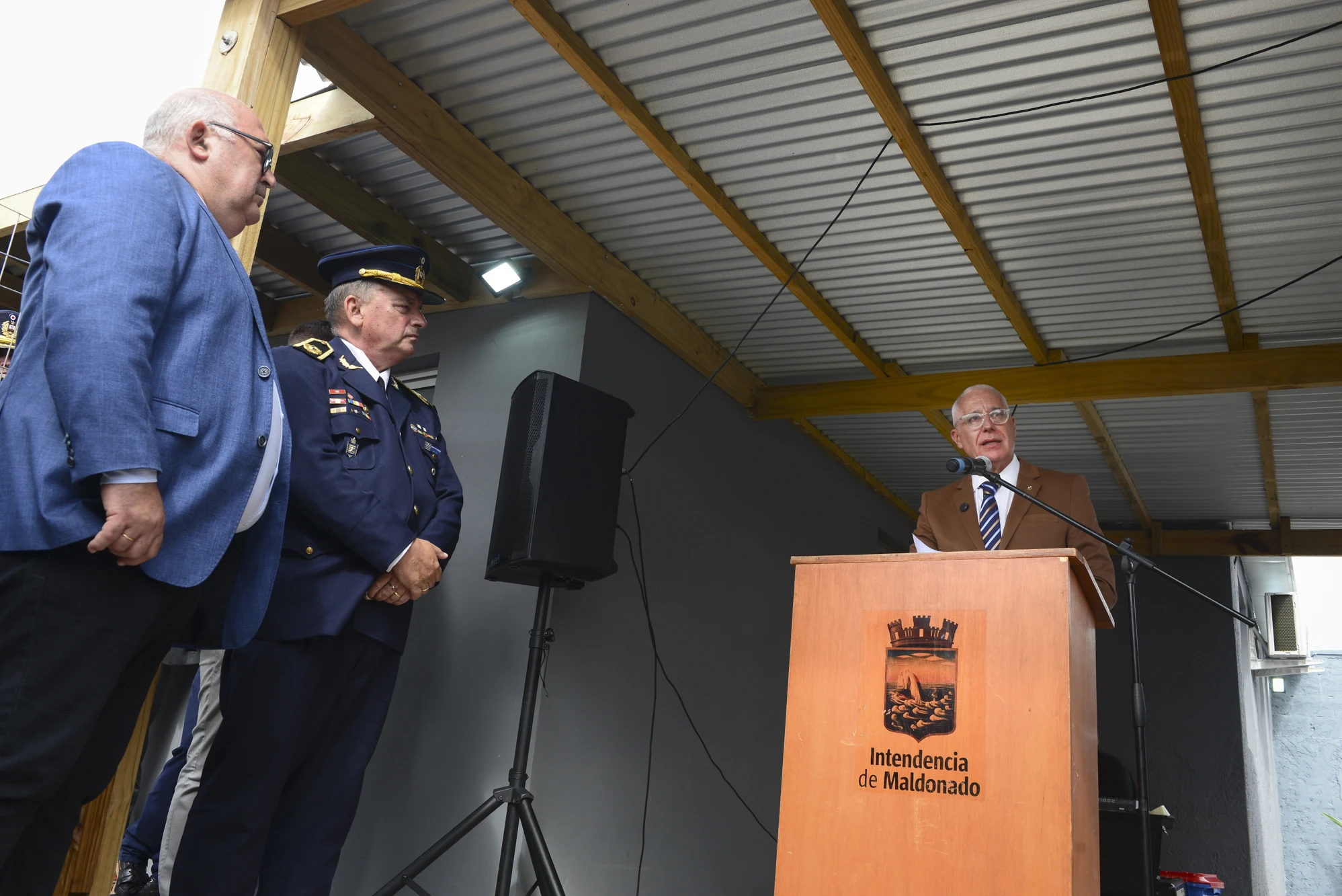 Miguel Abella, Víctor Trezza y Carlos Negro, el 17 de abril, durante la inauguración del nuevo destacamento policial en el barrio Kennedy.