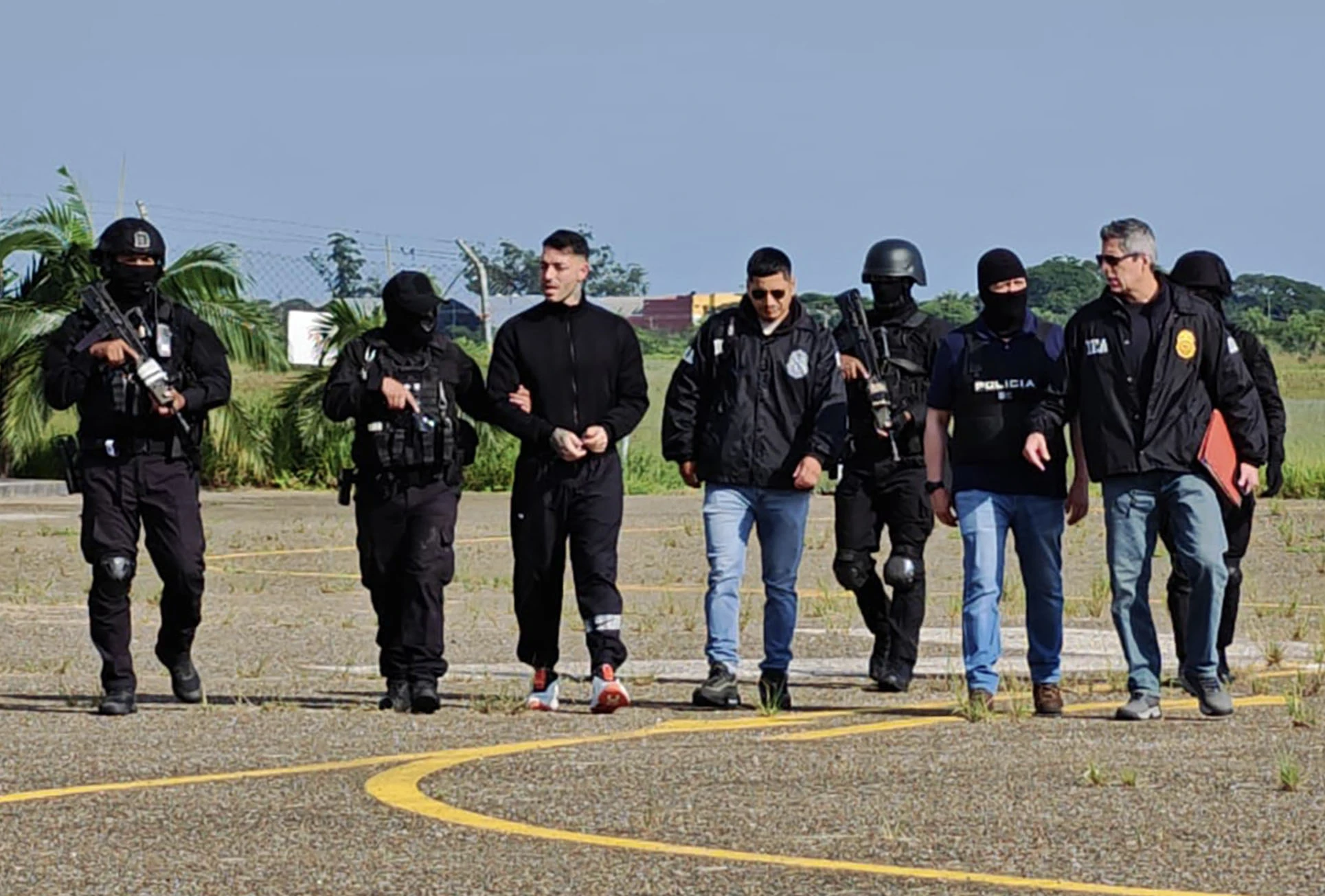 Traslado de Sebastián Marset por parte de efectivos de la Policía boliviana y la DEA, en el aeropuerto Viru Viru de Santa Cruz, Bolivia (archivo, marzo de 2026).
