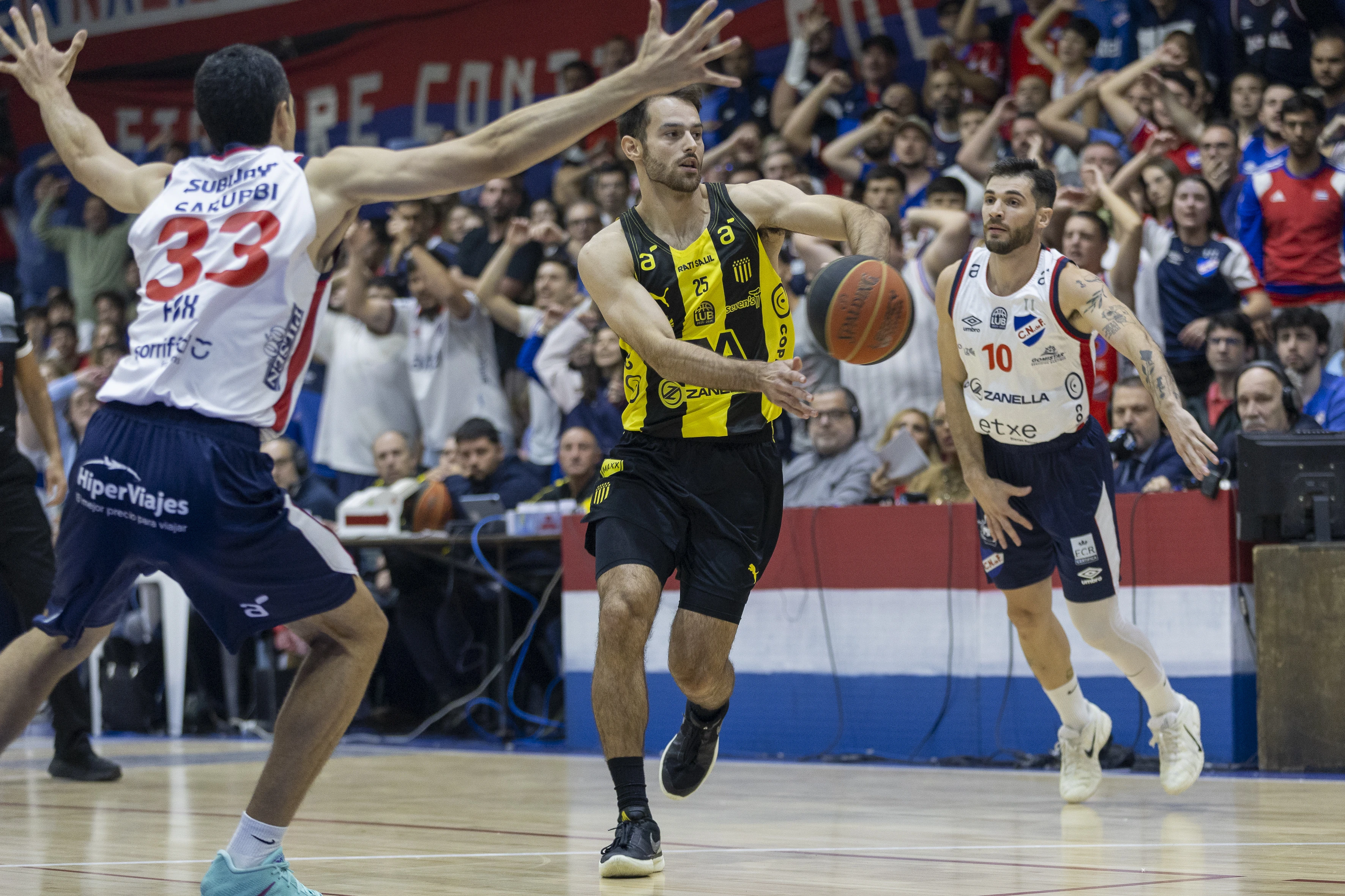 Santiago Véscovi, de Peñarol, contra Nacional por la Liga Uruguaya de Básquetbol, el 22 de abril, en el Polideportivo del Gran Parque Central.