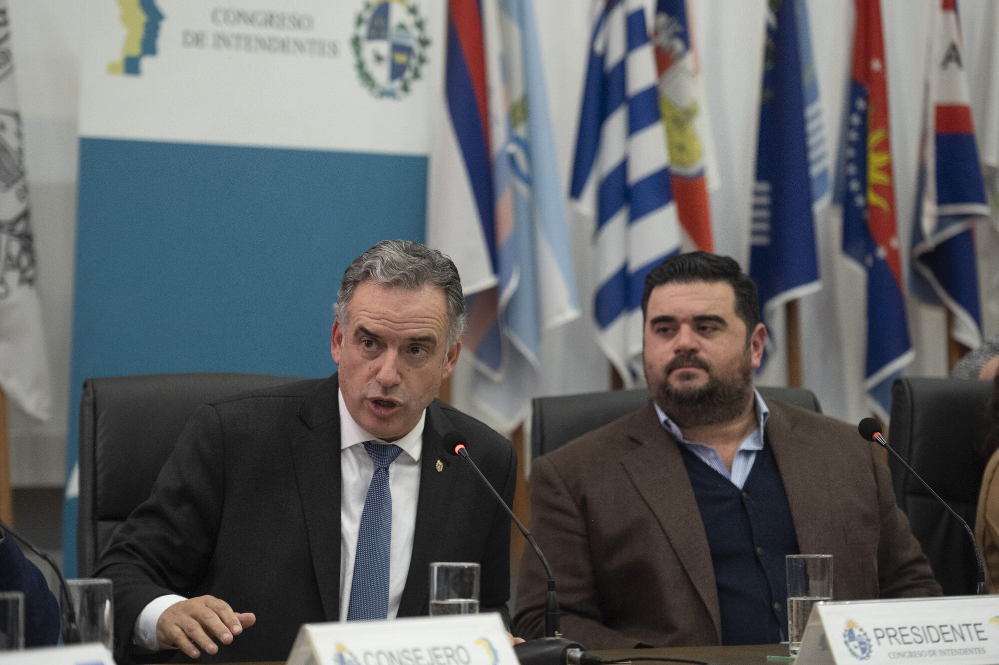 Yamandú Orsi y Nicolás Olivera, el 30 de julio, durante el Congreso de Intendentes.