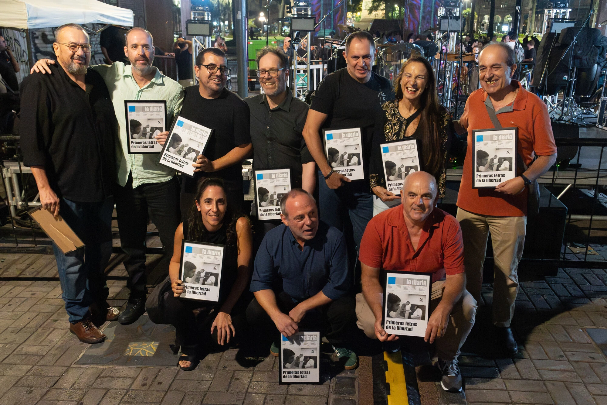 Parte del equipo fundador de La Diaria, durante la fiesta por sus 20 años.