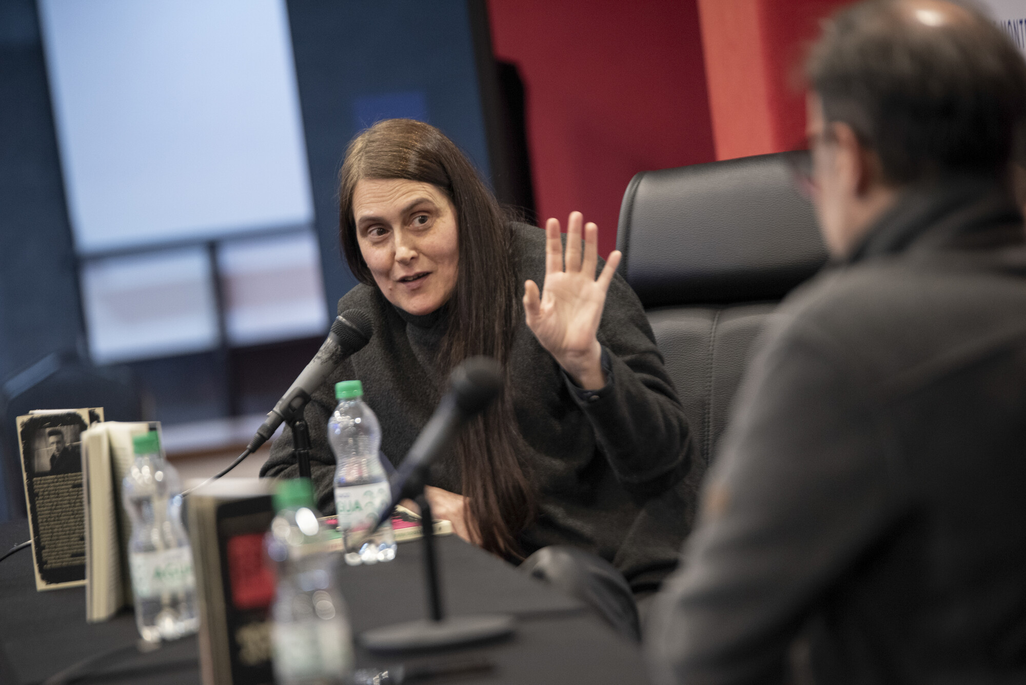 Vera Land durante la presentación del libro _Nacidos para molestar_, de Hugo Gutiérrez, en la 47ª Feria Internacional del Libro de Montevideo, el 27 de setiembre de 2025.
