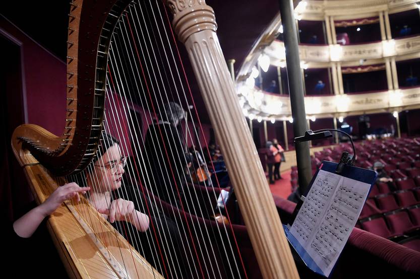 Banda Sinfónica de Montevideo en la reapertura del Teatro Solís, Montevideo (archivo, agosto de 2020).