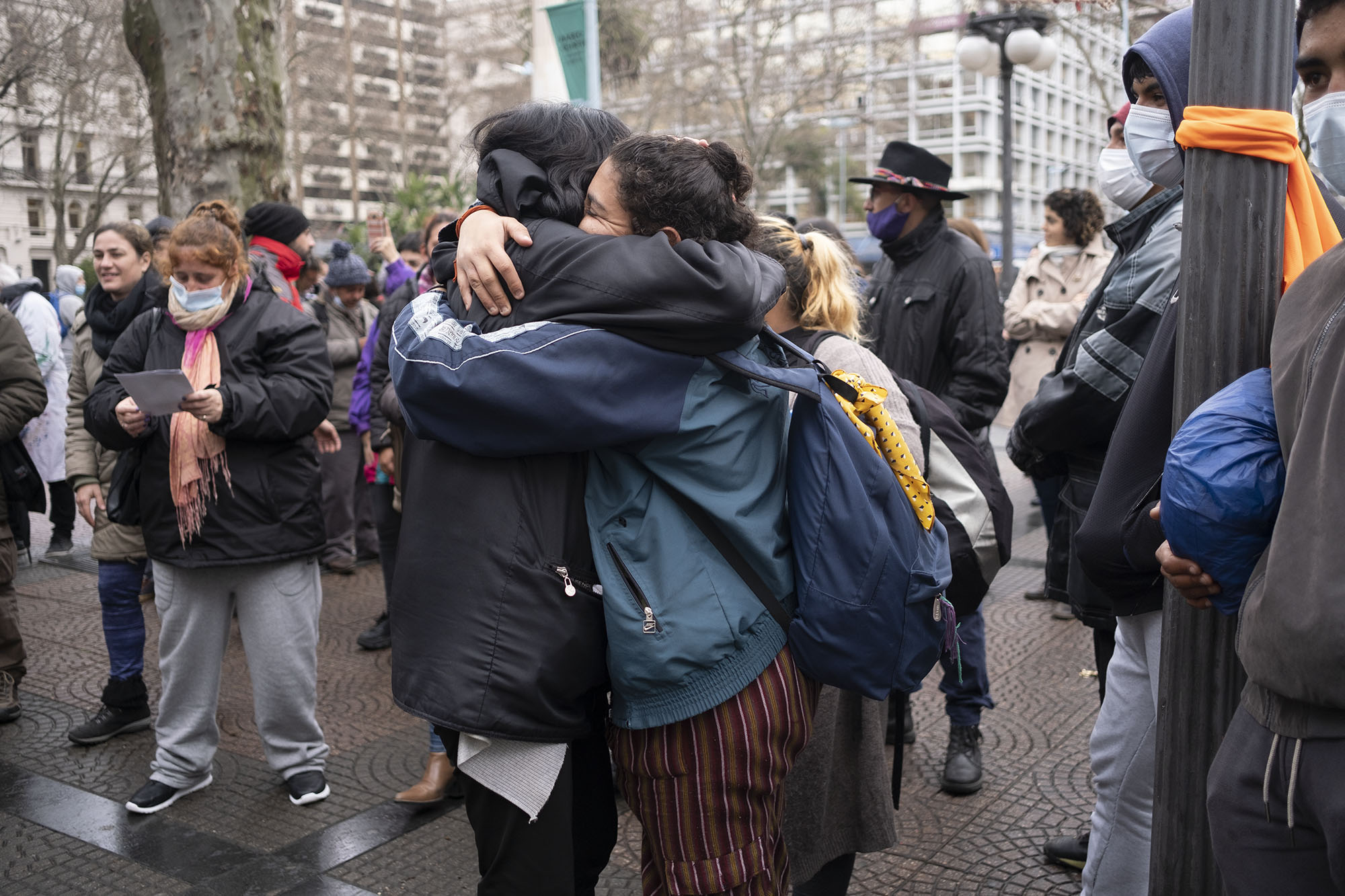 Movilización de personas en situación de calle, en la plaza Cagancha, en Montevideo (archivo, agosto de 2021).