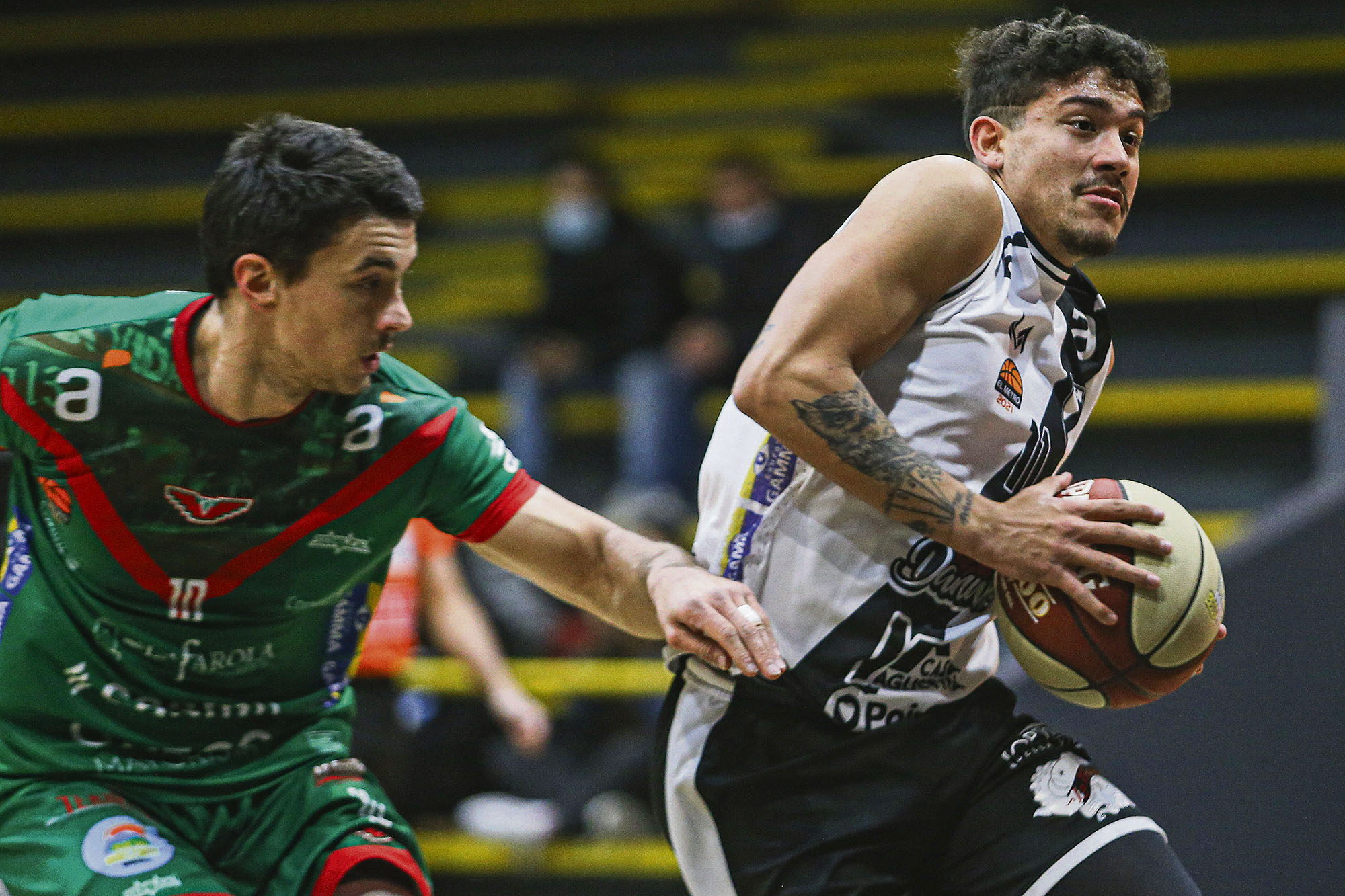 Andrés Dotti, de Verdirrojo y Luciano Planells, de Danubio, por el Metro, en la cancha de Larre Borges (archivo, agosto de 2021).
