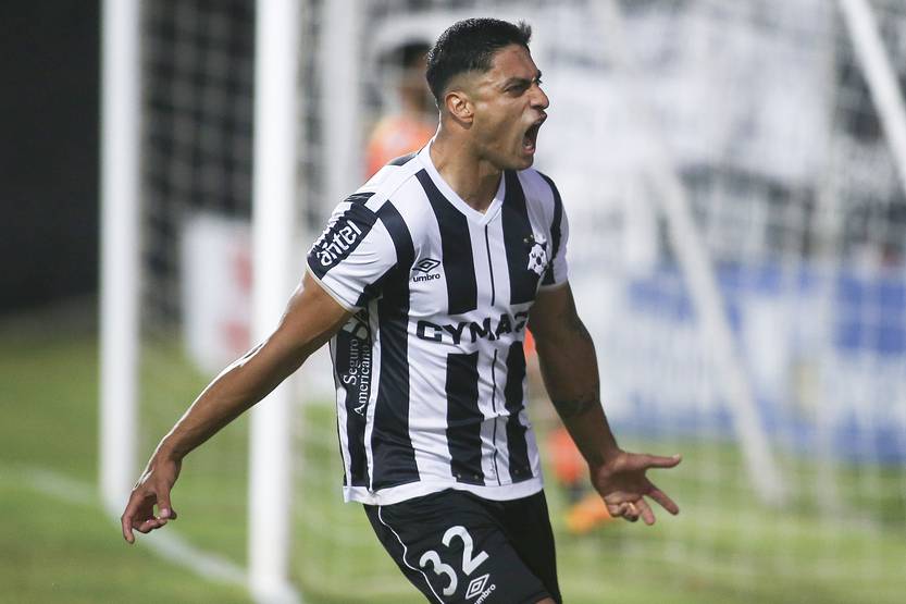 Hernán Rivero, de Wanderers, luego de convertir un gol a Sud América, por la treceava fecha del Torneo Clausura, el 19 de noviembre, en el Parque Alfredo Víctor Viera.