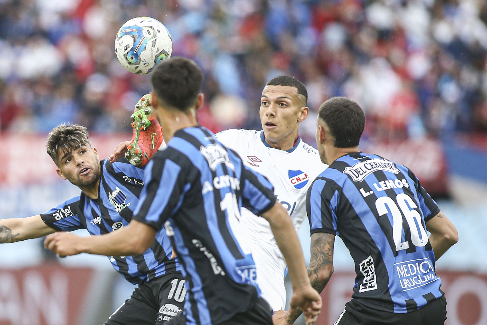 Alan Medina, de Liverpool, y Franco Fagúndez, de Nacional, en la final del Campeonato Uruguayo, en el estadio Centenario (archivo, octubre de 2022).
