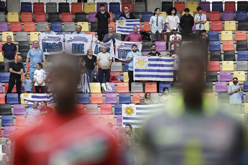 Hinchada uruguaya, el 1º de junio, durante el partido con Gambia por los octavos de final de la Copa Mundial de Fútbol sub-20, en el estadio Único de Ciudades en Santiago del Estero.