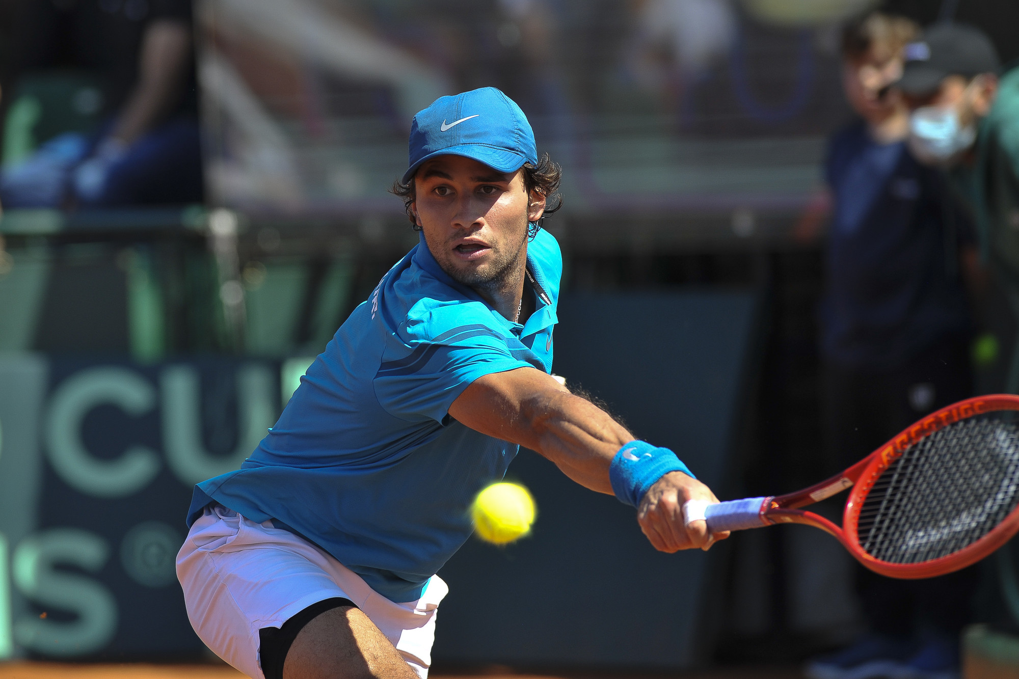Francisco Llanes, durante un partido por Copa Davis, en el Carrasco Lawn Tennis, en Montevideo (archivo, 2021).