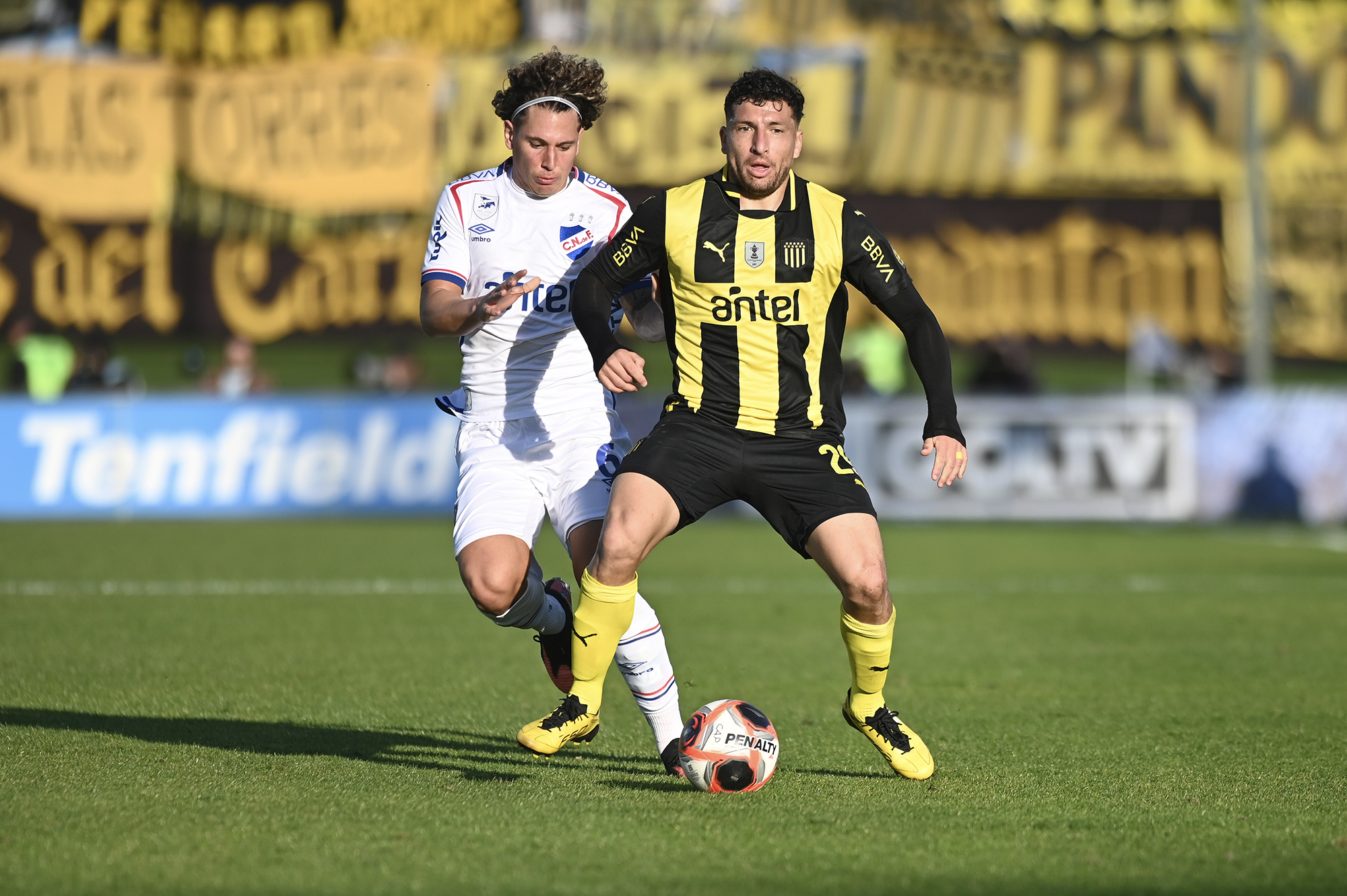 Luciano Boggio, de Nacional, y Eric Remedi, de Peñarol, durante la final del campeonato intermedio en el estadio Centenario (archivo, julio de 2025).