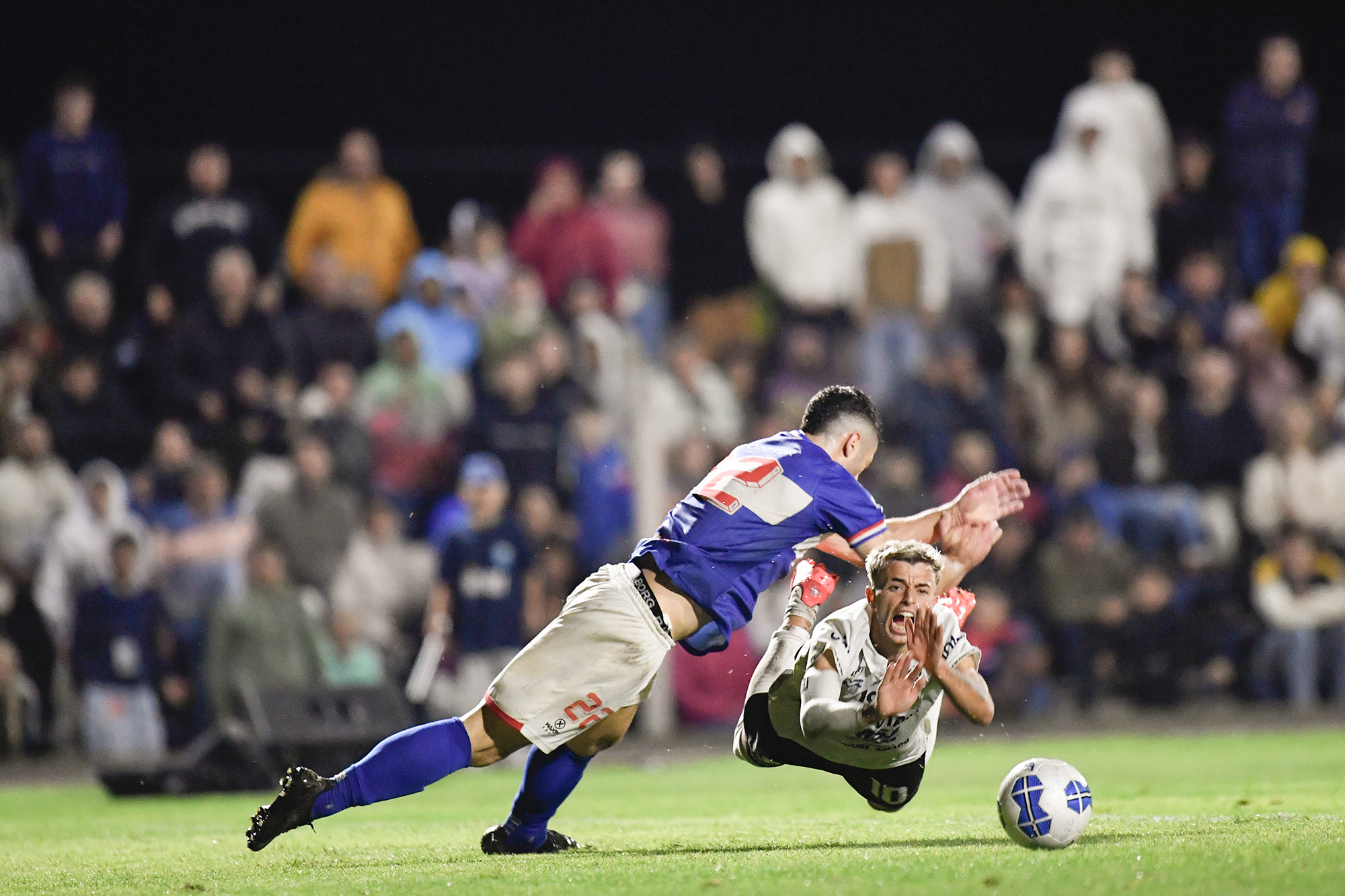 Gregorio Almeida, de Lavalleja, y Kevin Torena, de San José, por la 21ª Copa Nacional de Selecciones, en el estadio Casto Martínez Laguarda, en San José (archivo , abril de 2025).