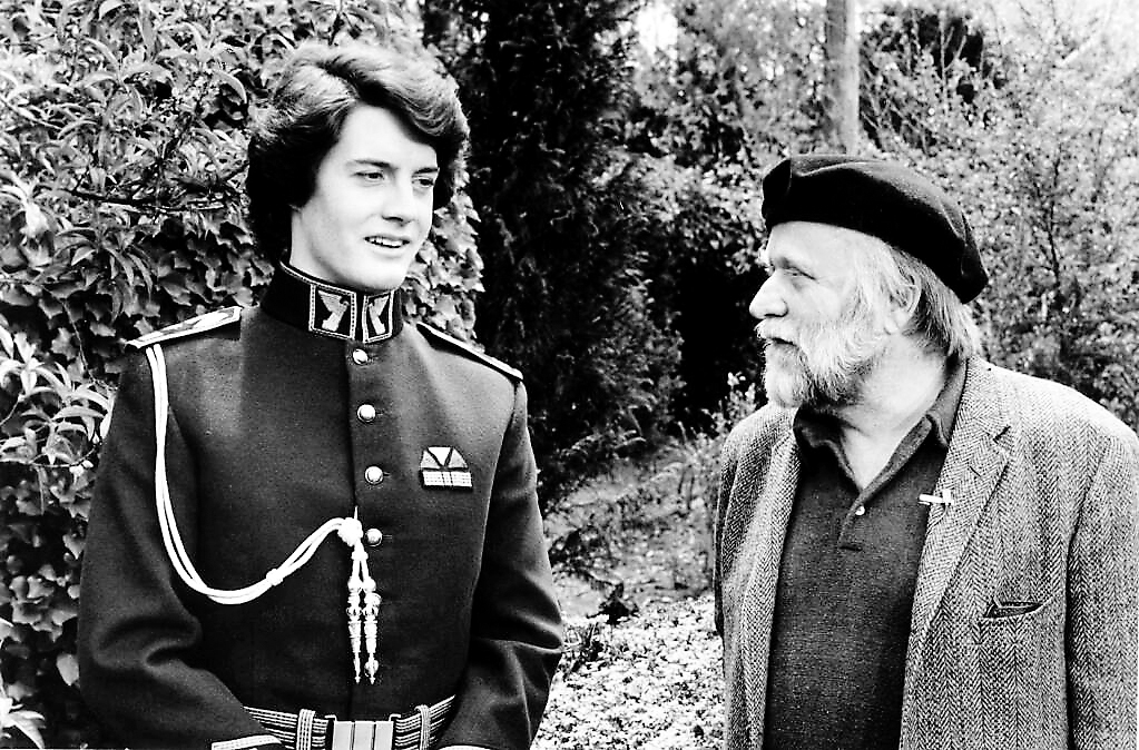 Frank Herbert y el actor Kyle MacLachlan durante la filmación de _Dune_ en 1984. Foto: Universal City Studios.
