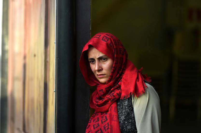Una afgana tras la llegar, este lunes, a la base aérea de Torrejón de Ardoz a bordo de un avión con 260 personas procedentes de Afganistán.