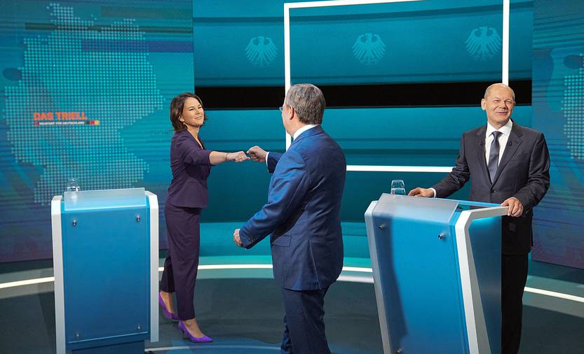 Annalena Baerbock (i), Armin Laschet (C), y Olaf Scholz (d), en un debate electoral televisado, el domingo, en Berlín.