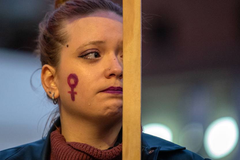 Alerta feminista convocada por la Coordinadora de Feminismos por los asesinatos de Katherine Martínez y Mariana Rivero, en el Centro de Montevideo (13.11.2023).